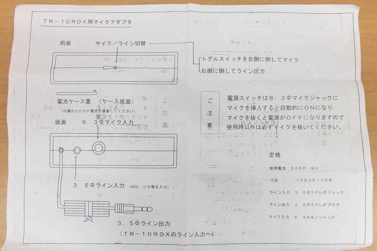 ●詳細不明 TR-10RDX用マイクアダプタ 本体・取扱説明書付