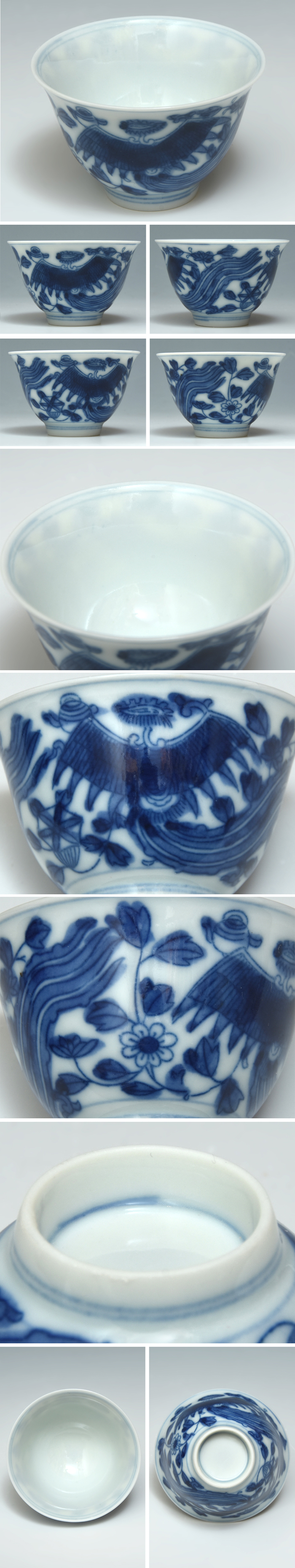 時代 染付煎茶碗 20客揃いです。 胴に鳳凰が描かれております。 1客にカケ、ほか焼成時に出来た窯傷などがございますが、そのほか目立ったダメージはなくコンディションは良好です。 ※撮影の際に生じた写り込みなどがございます。 ご理解の程よろしくお願い致します。 |