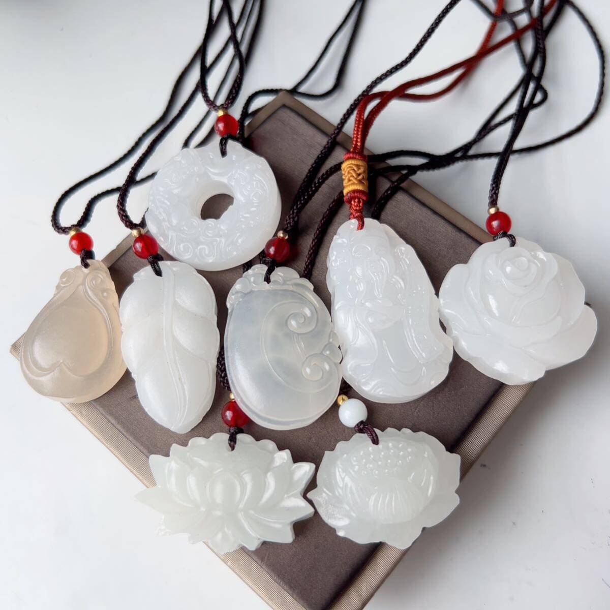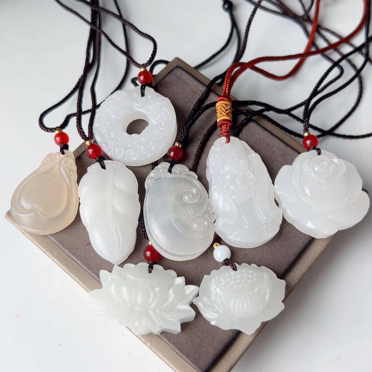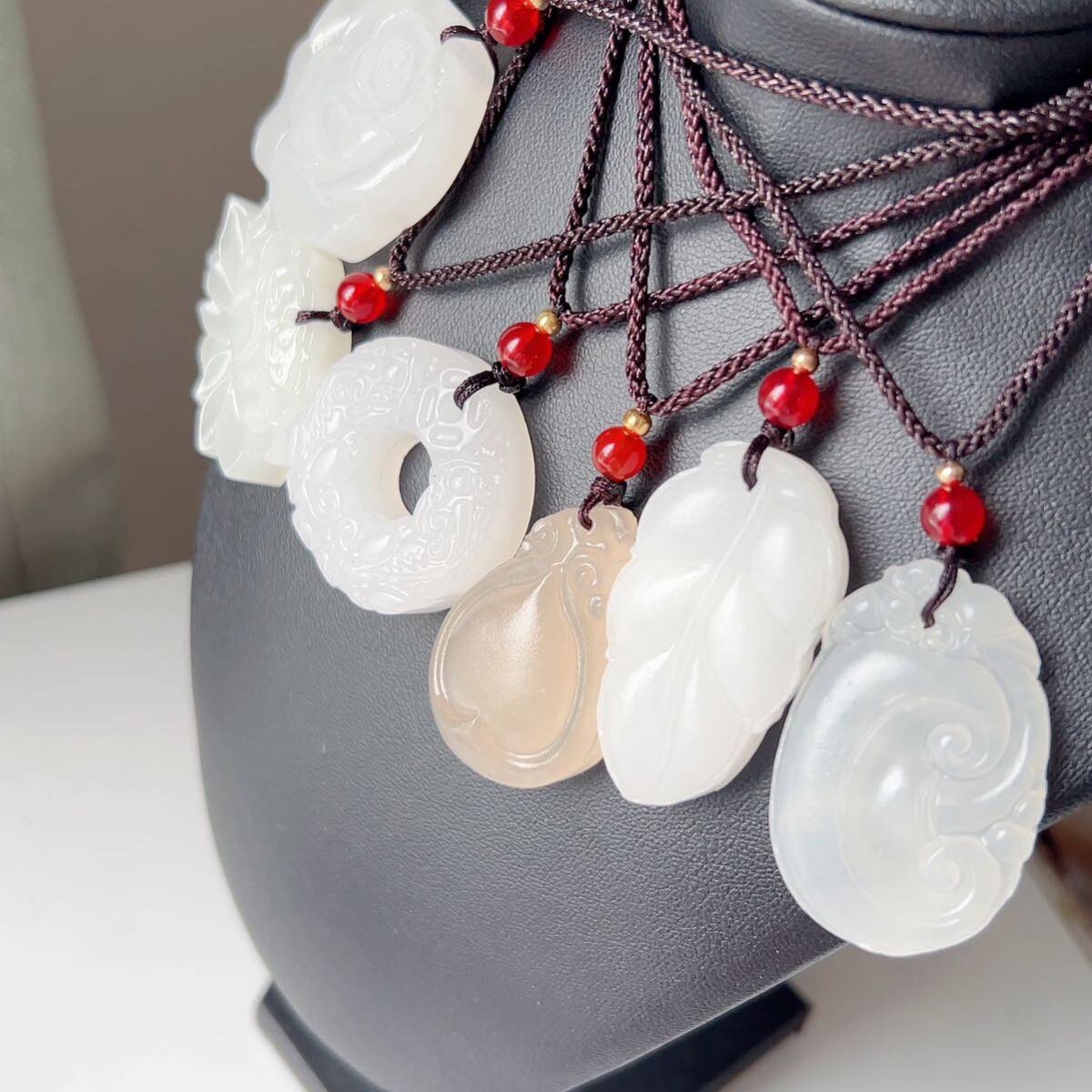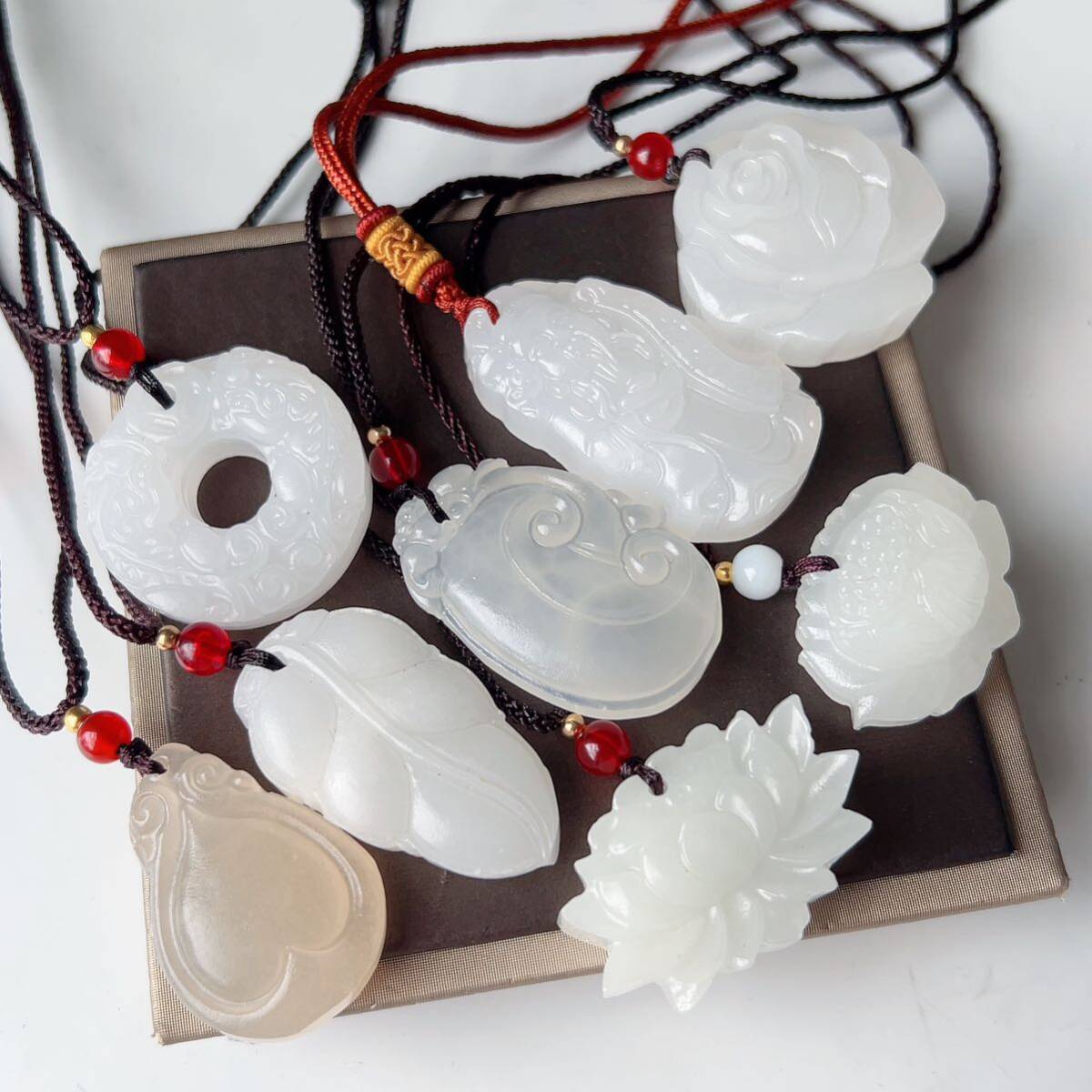 8点まとめ売り◇アフガニスタン◇翡翠・ヒスイ◇天然石◇ネックレス◇ペンダント◇彫刻◇巾着袋付き◇プレゼントにも 031S9271