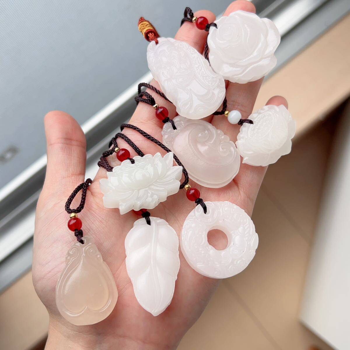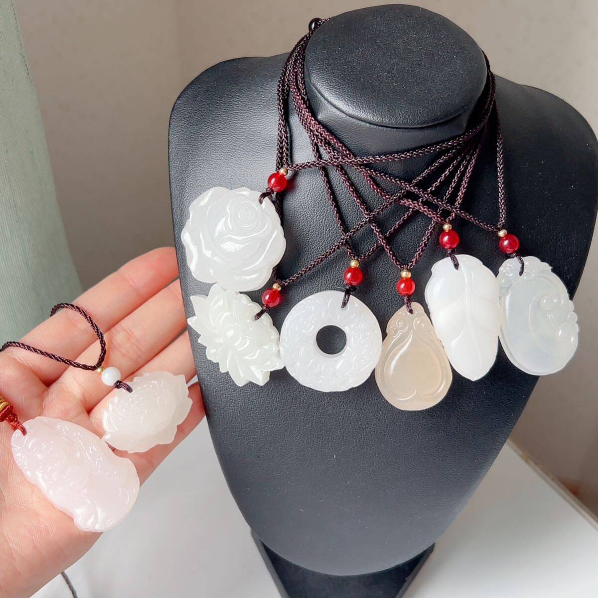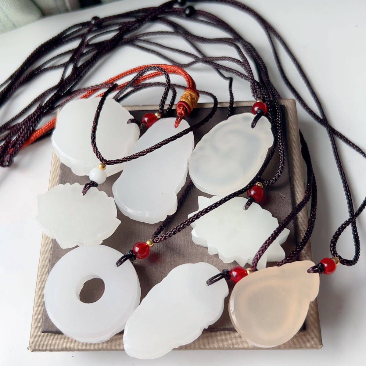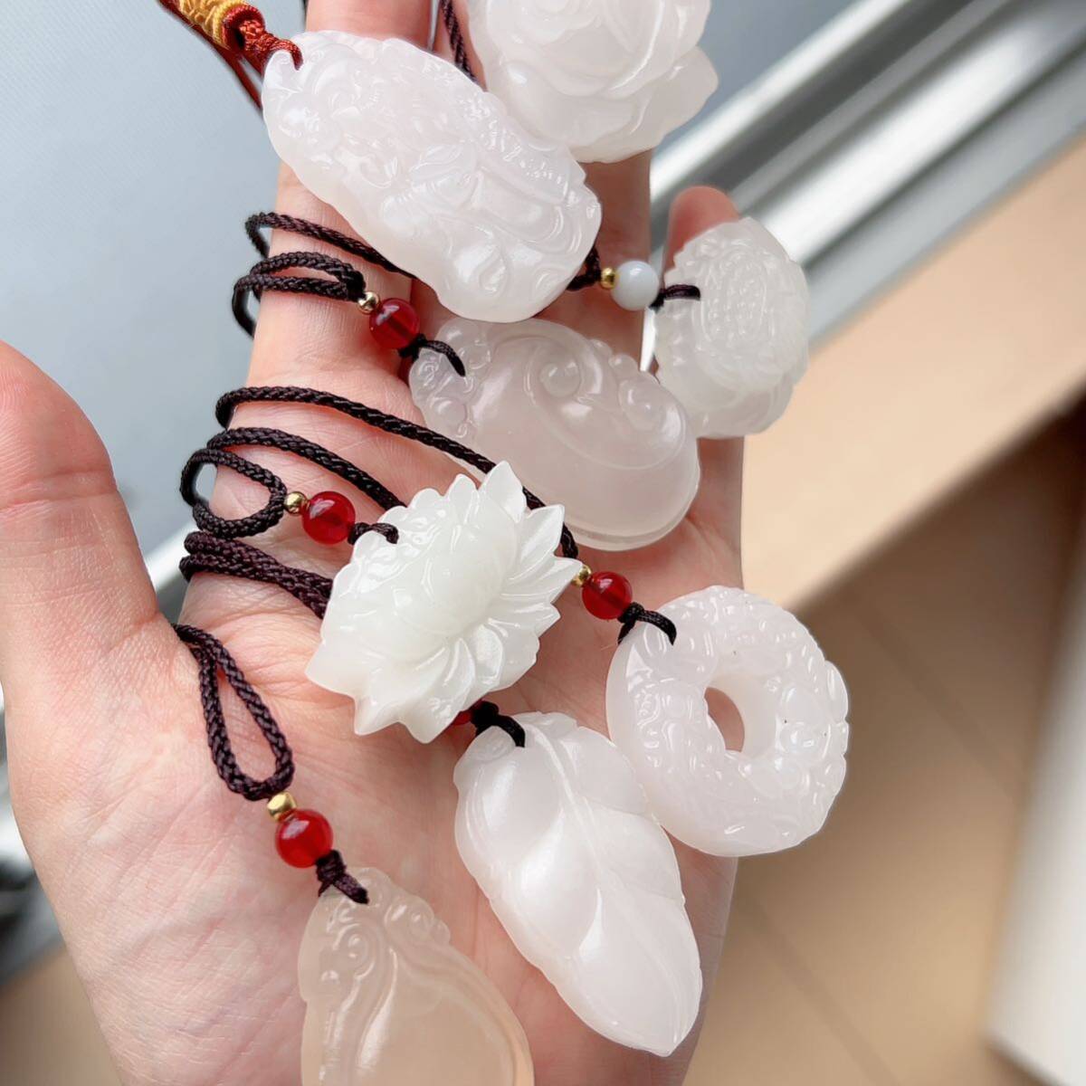 8点まとめ売り◇アフガニスタン◇翡翠・ヒスイ◇天然石◇ネックレス◇ペンダント◇彫刻◇巾着袋付き◇プレゼントにも 031S9271