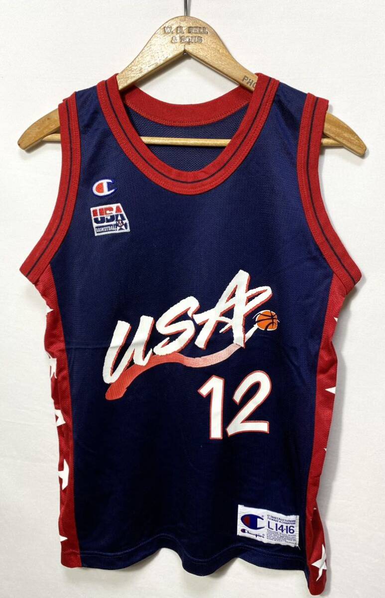 ■ 子供用 90s ビンテージ USA製 Champion チャンピオン USA BASKETBALL #12 STOCKTON バスケ ユニフォーム サイズL アメリカ代表 観戦 ■