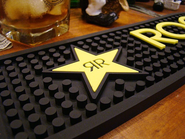 このマットをテーブルや木箱に敷けば、そこは粋なバーカウンターに変身ってヤツです。