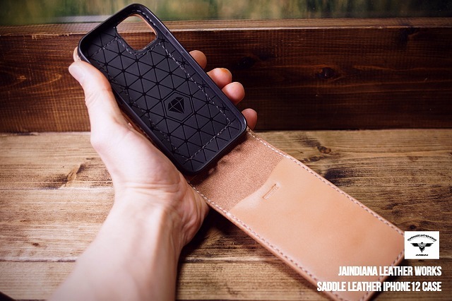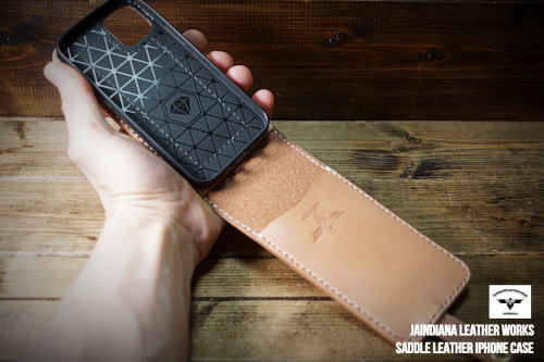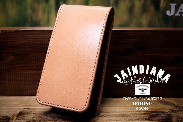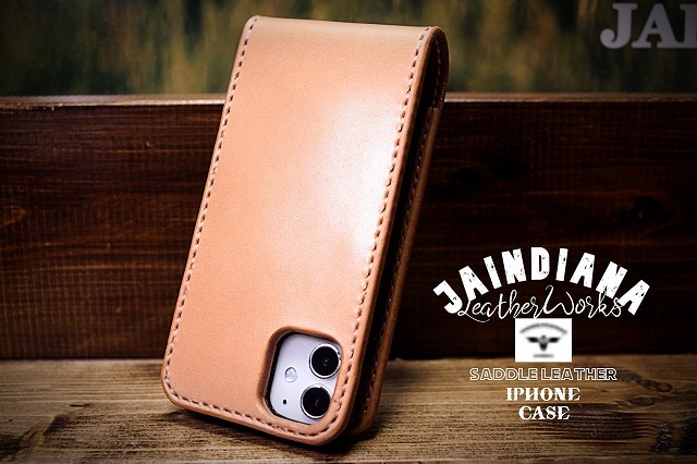 iPhone16ケース 手縫い サドルレザー 下開き ナチュラル (iPhone16pro,16proMax,16Plus仕様での製作も可) | ||||
