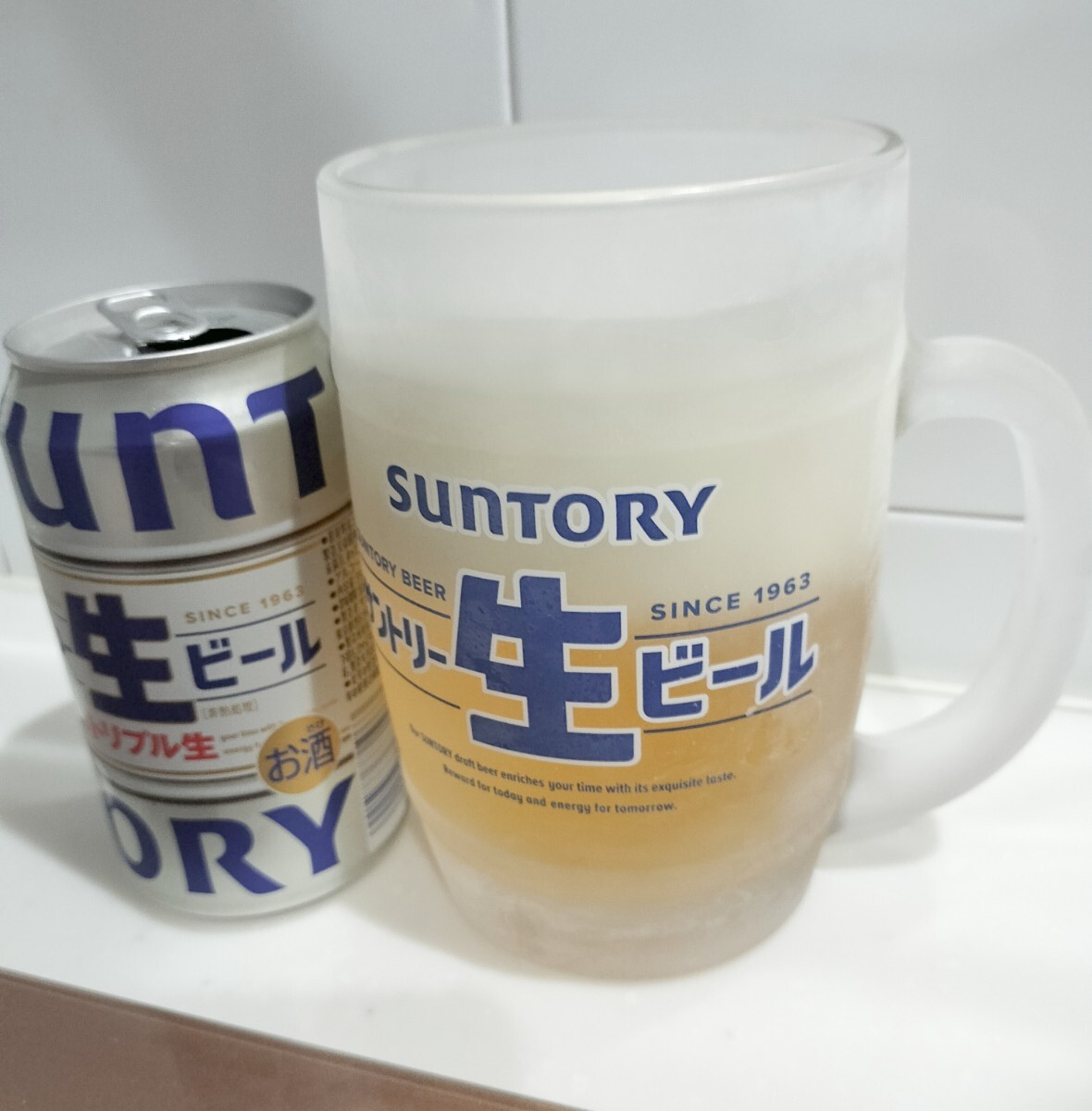 700mlジョッキはガラスが分厚いので冷凍庫でキンキンに冷やしてキンキンのビールを入れると、うっすら氷の膜が出来て氷点下ビールの様な冷たさが楽しめます。