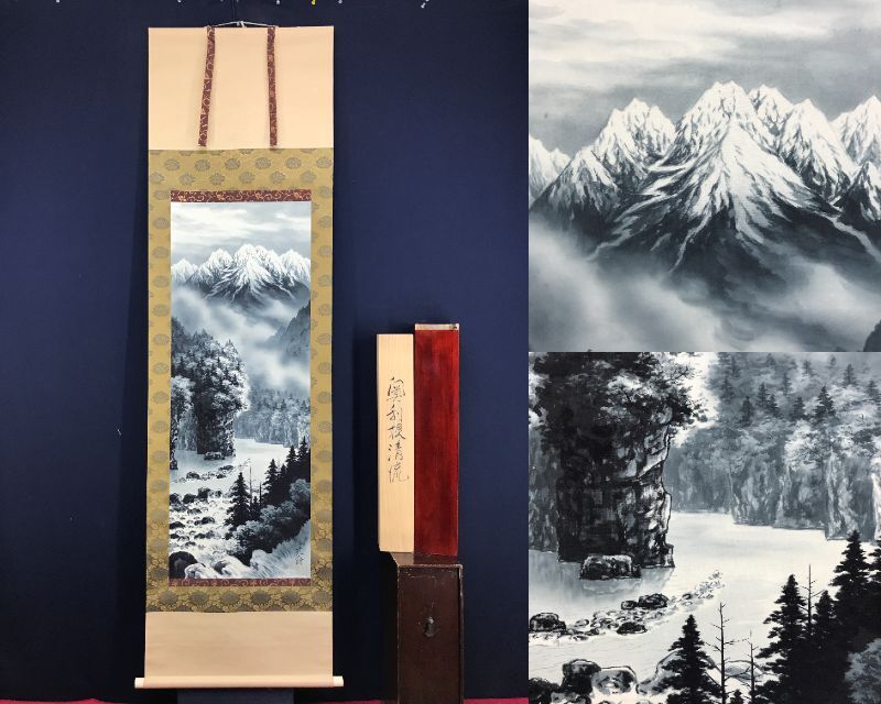 【作品状態】 本紙は絹本肉筆です。本紙、表装共に良好です。太巻芯が欠品しております。二重箱の蓋が欠損しております。