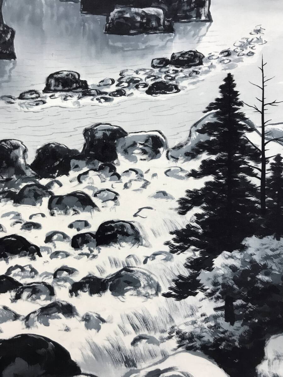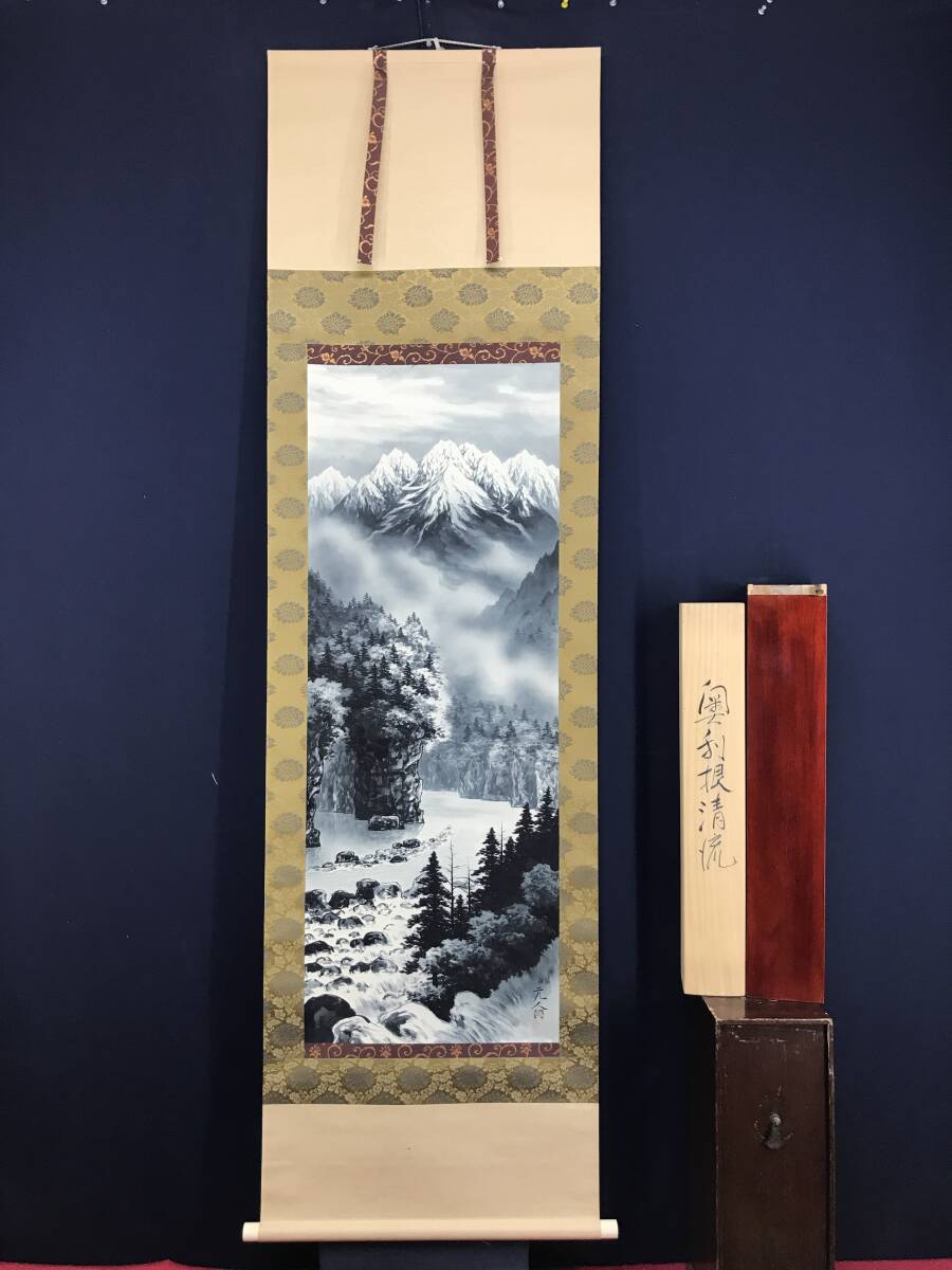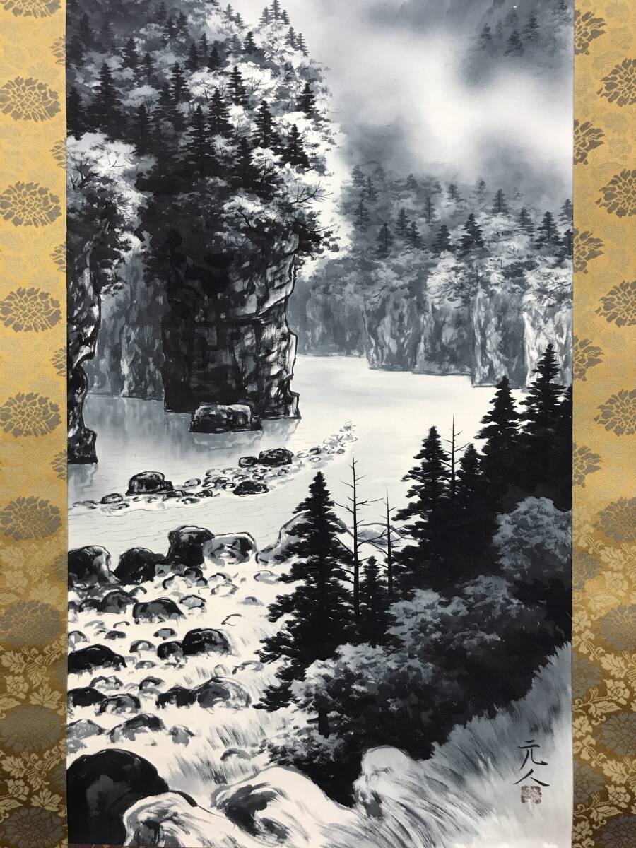 真作/杉原元人/奥利根清流図/山水図/掛軸☆宝船☆AG-808