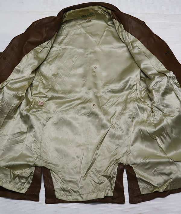 アメリカ買い付けの70’S-80'S頃のアメリカ製のMID WESTERNのディアスキンレザージャケットで裏地内装はアセテート?の茶系です。