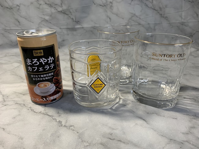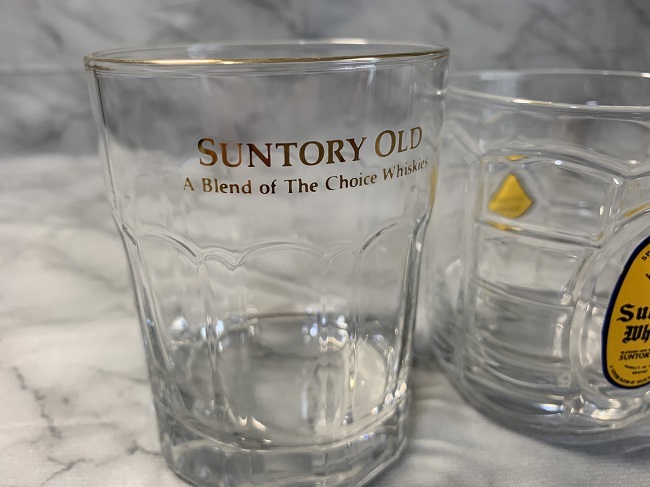 サントリーオールド:高さ9.4cm 飲み口直径7.3cmくらい×2個