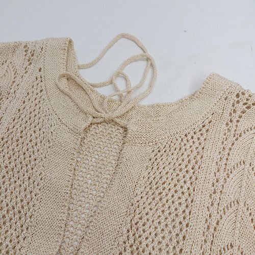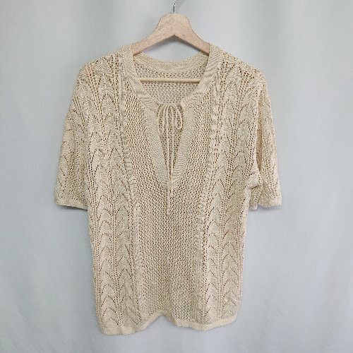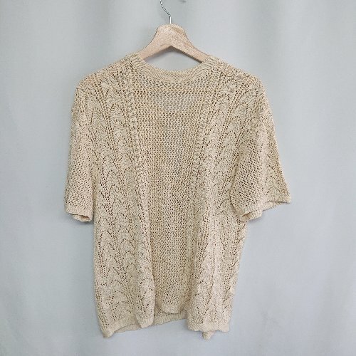 ◇ ⊂ LOWRYS FARM 透かし編み 半袖 ニット サイズF ベージュ レディース E
