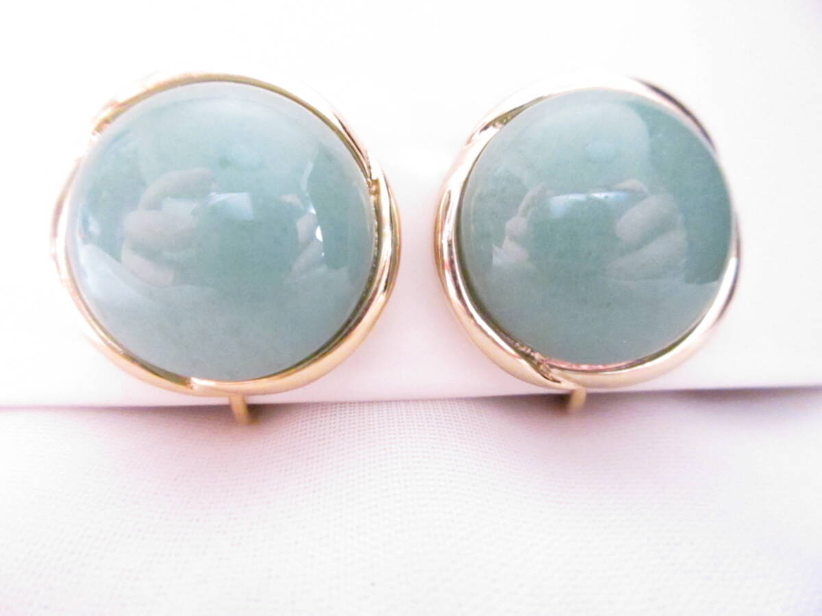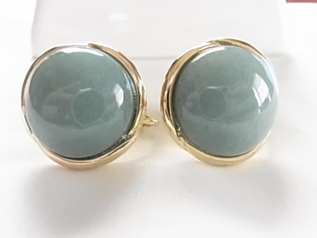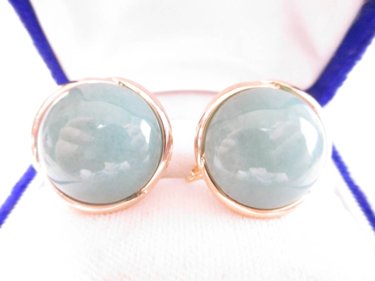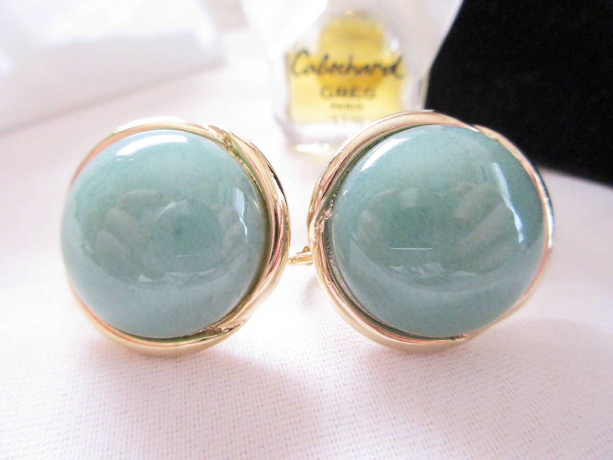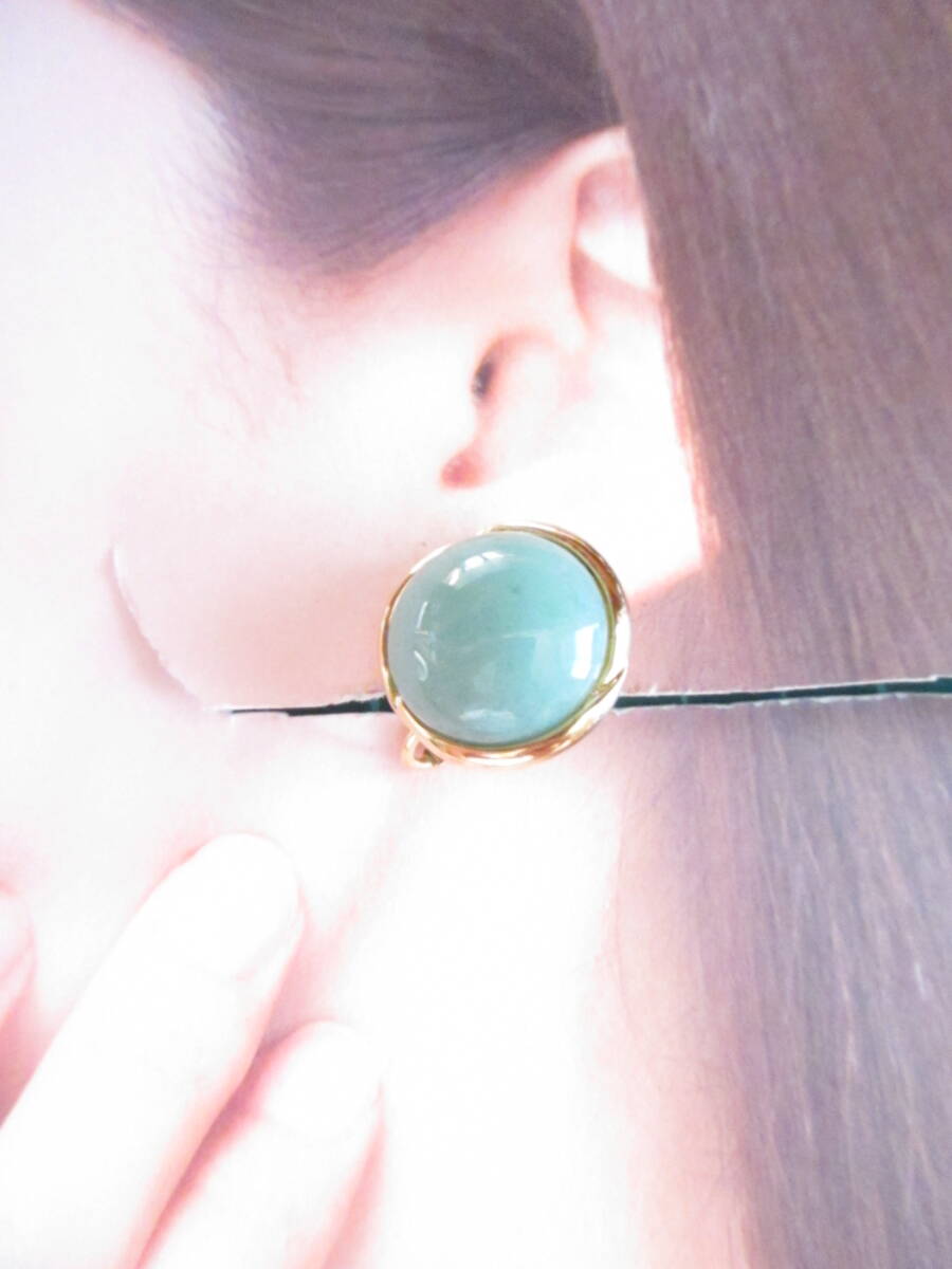 ♪ビンテージ/ヴィンテージ ジャスパーグリーンと青竹色がMIXしたような色味 和洋折衷の印象のデザイン 昭和レトロ素敵イヤリング