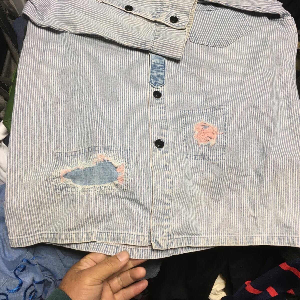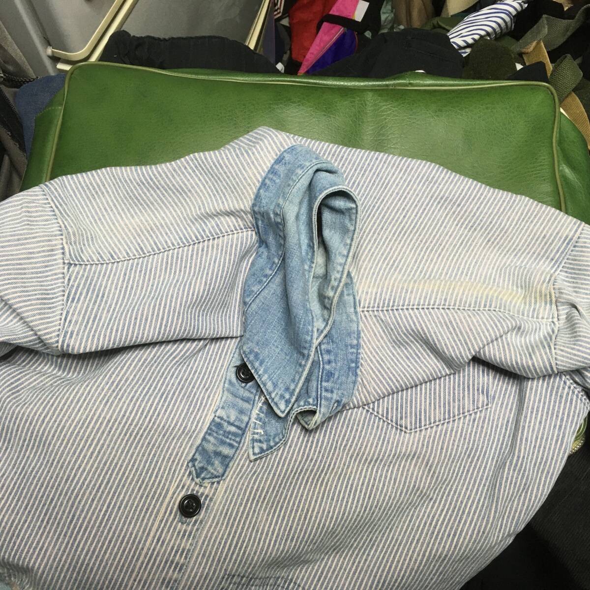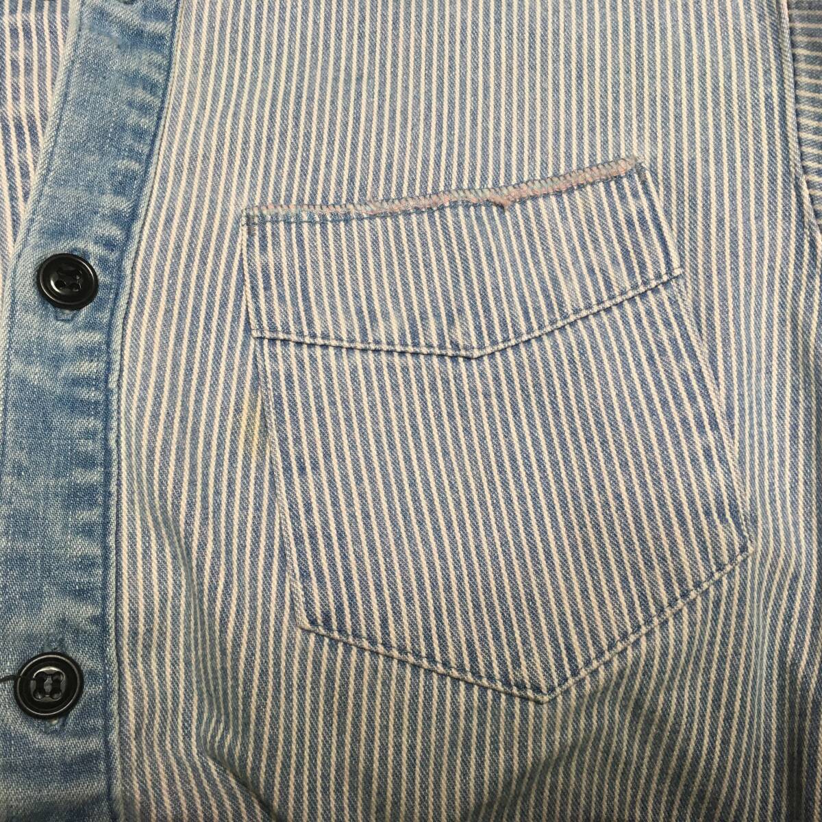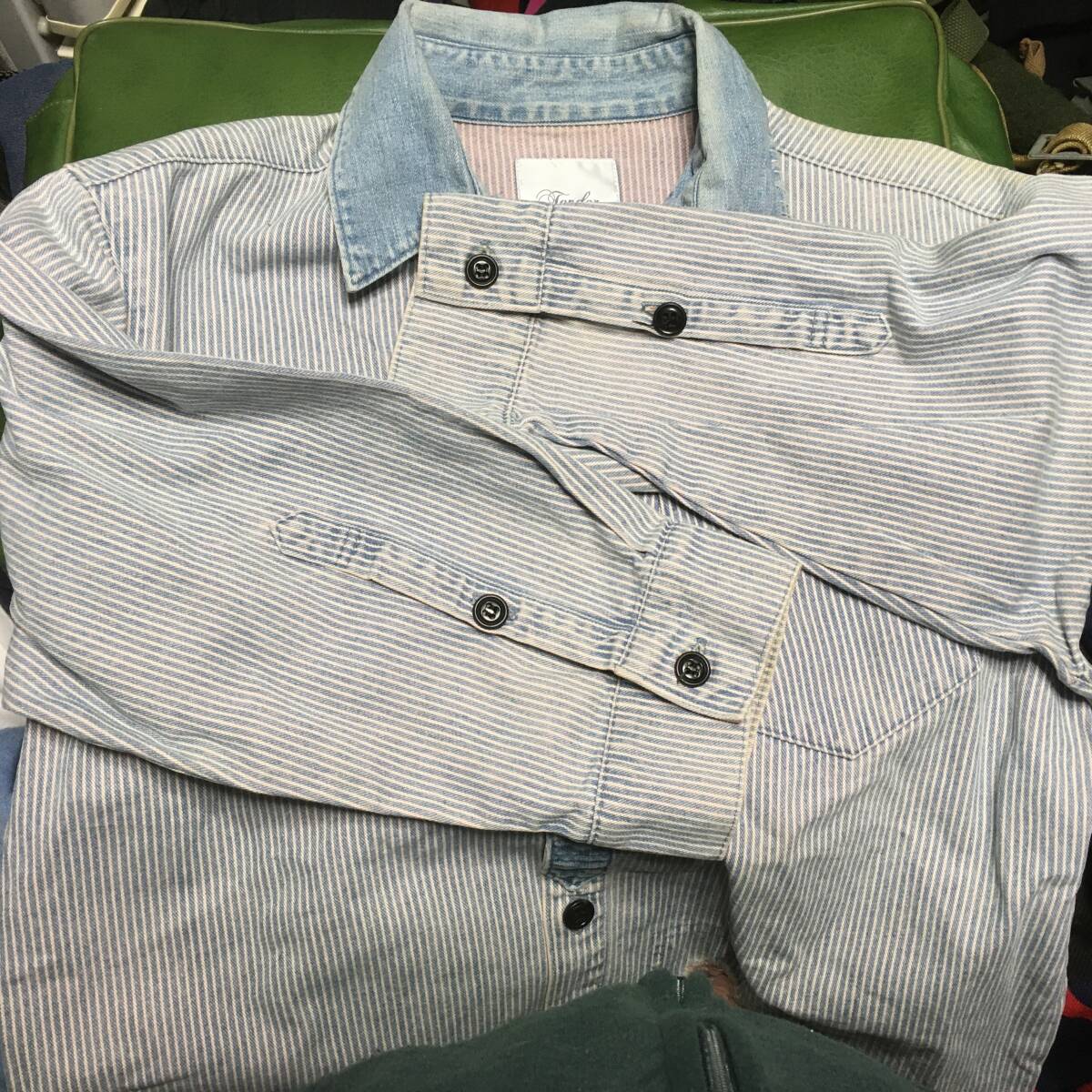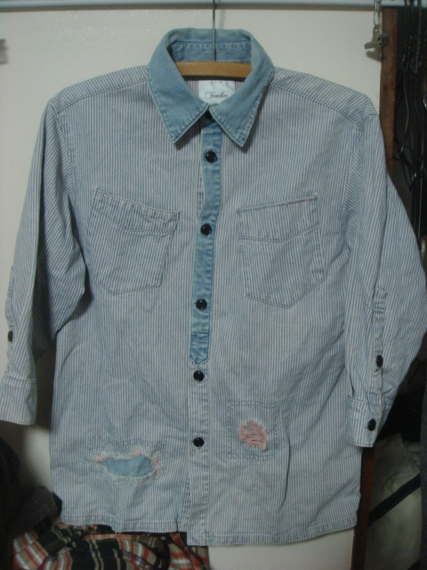 TENDOR ヒッコリー×デニム切替え 7分シャツです。