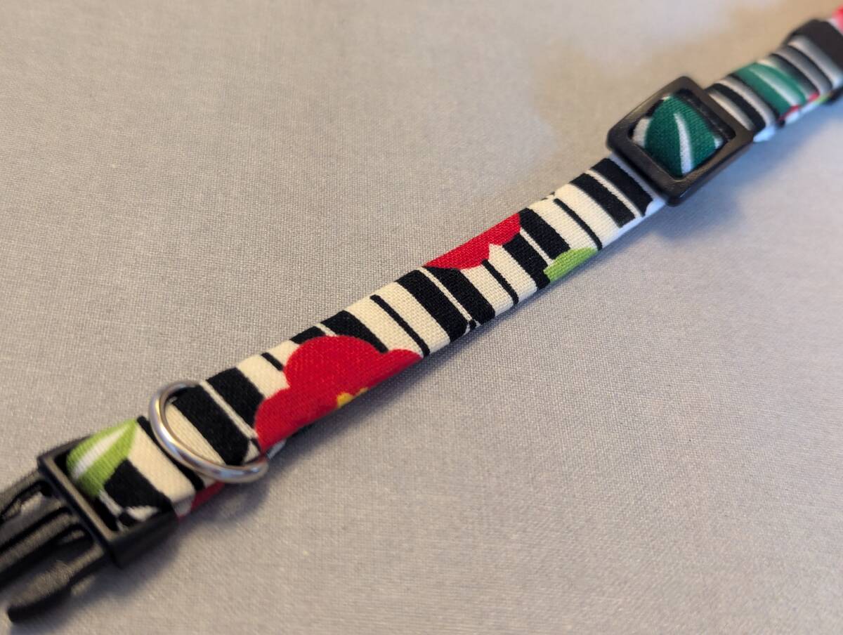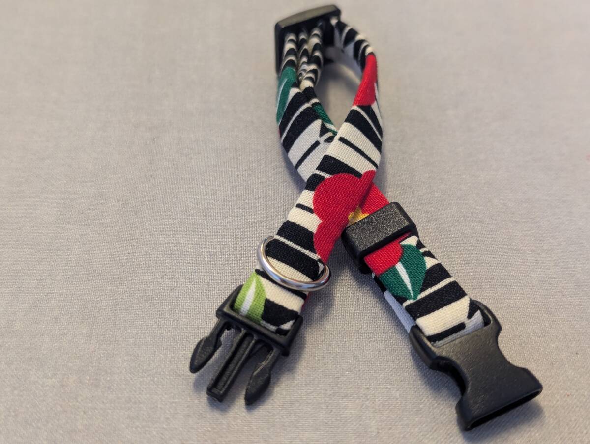 ★手作り京都作家物 猫 首輪 和柄★矢絣地紅白つばき柄★ハンドメイド (セーフティタイプ) 即決700円