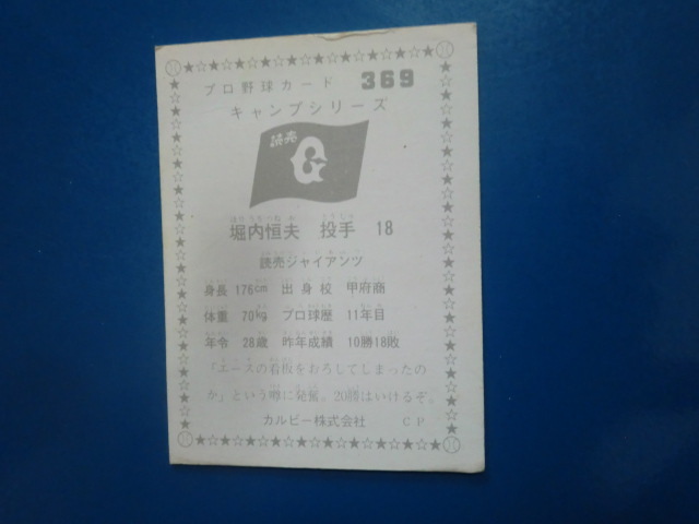 カルビー プロ野球 1976 No.369 堀内恒夫