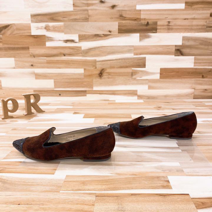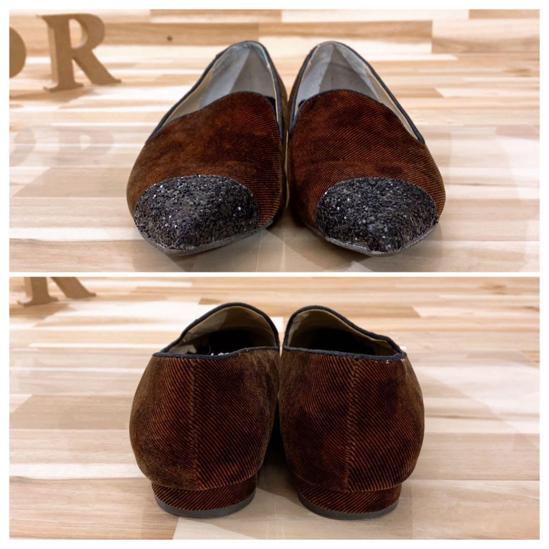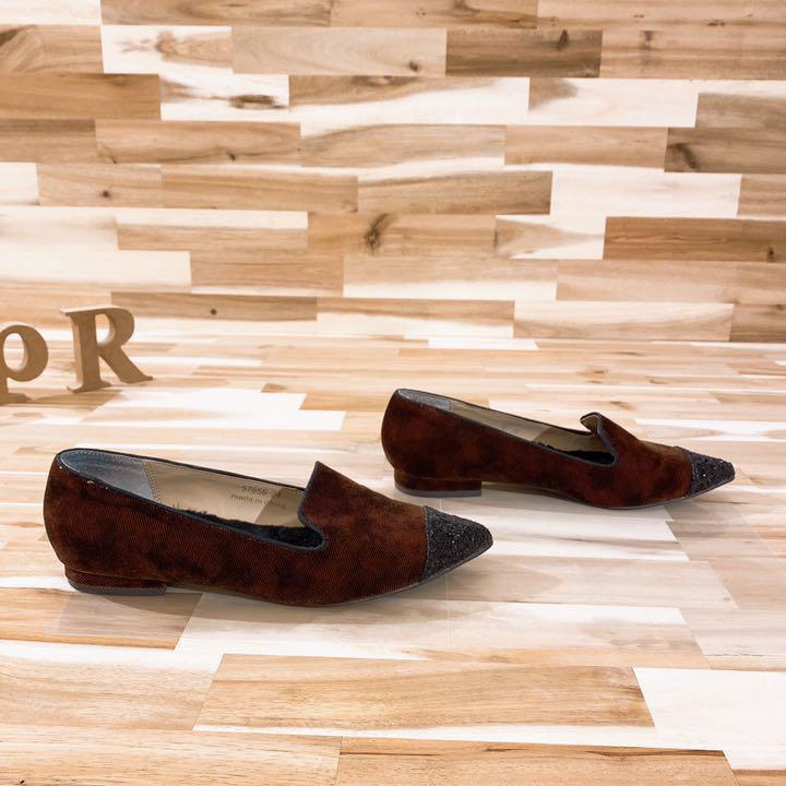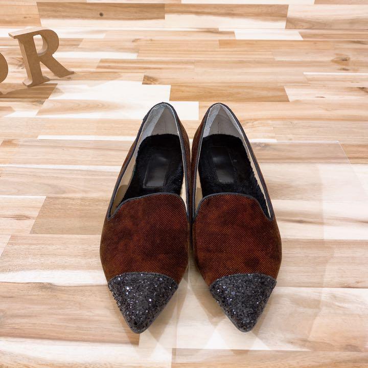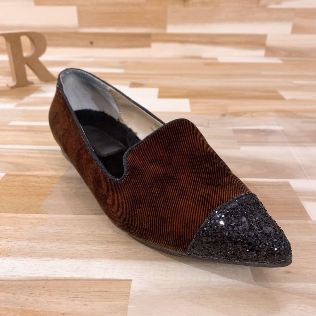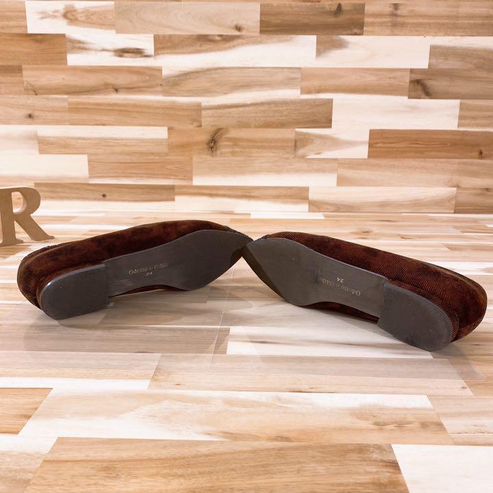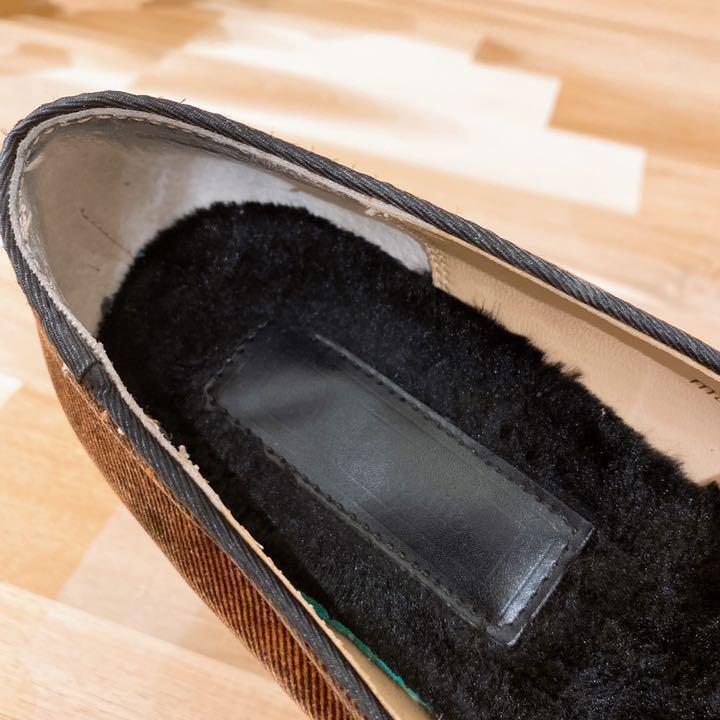 上品な落ち着いた色合いで大人オシャレなOdette e Odileのパンプスです。中敷き部分のボア生地が暖かく、お洒落に防寒できるおすすめのアイテムです。