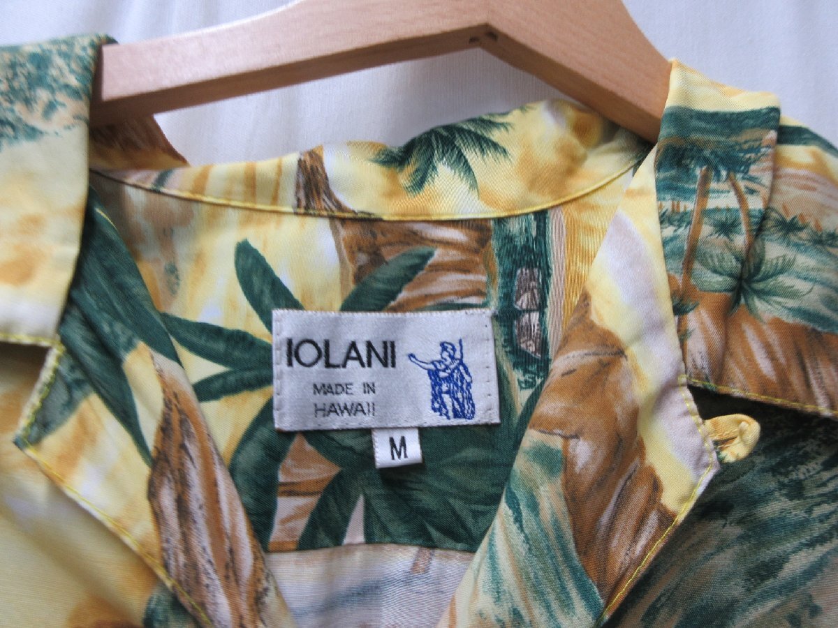 未使用 長期保管 ハワイ製 イオラニ Iolani ハワイアンアロハシャツ サイズM