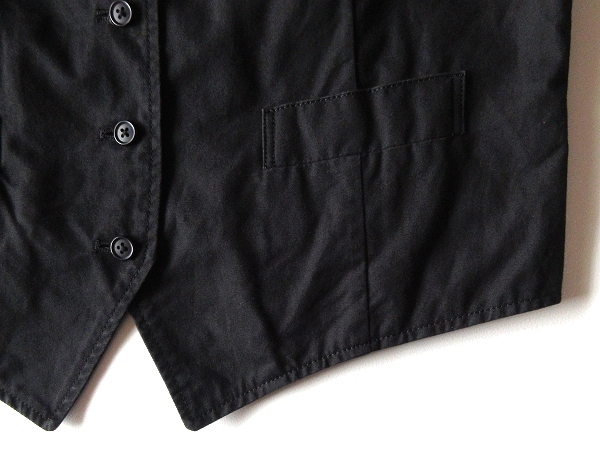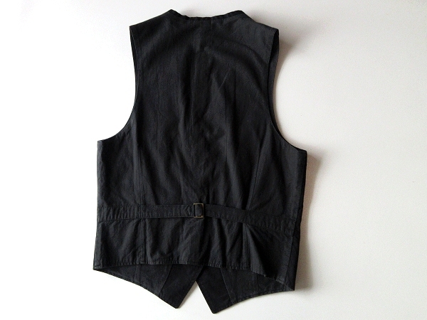 カネコイサオのベスト。コットンのツイル生地を使用しております。左胸のイニシャルロゴプリントが魅力。バックベルトのディテールがポイントです。上質な素材使いと綺麗なシルエットで、様々なコーディネートにお使い頂ける一着です。