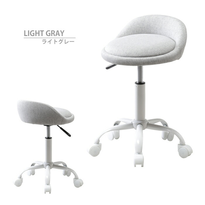 | キャスターの付いた可愛いファブリックのチェア。 デスク前からキッチン回りなどいろいろな場所で活躍します。 座昇降(ガスシリンダー式)機能付き。 |