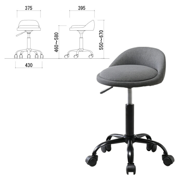 | 約〔本体〕幅375×奥行395×高さ550~670(座面高:460~580mm) |