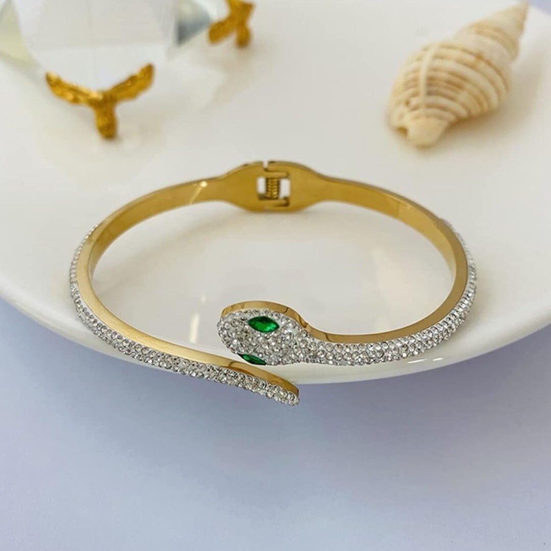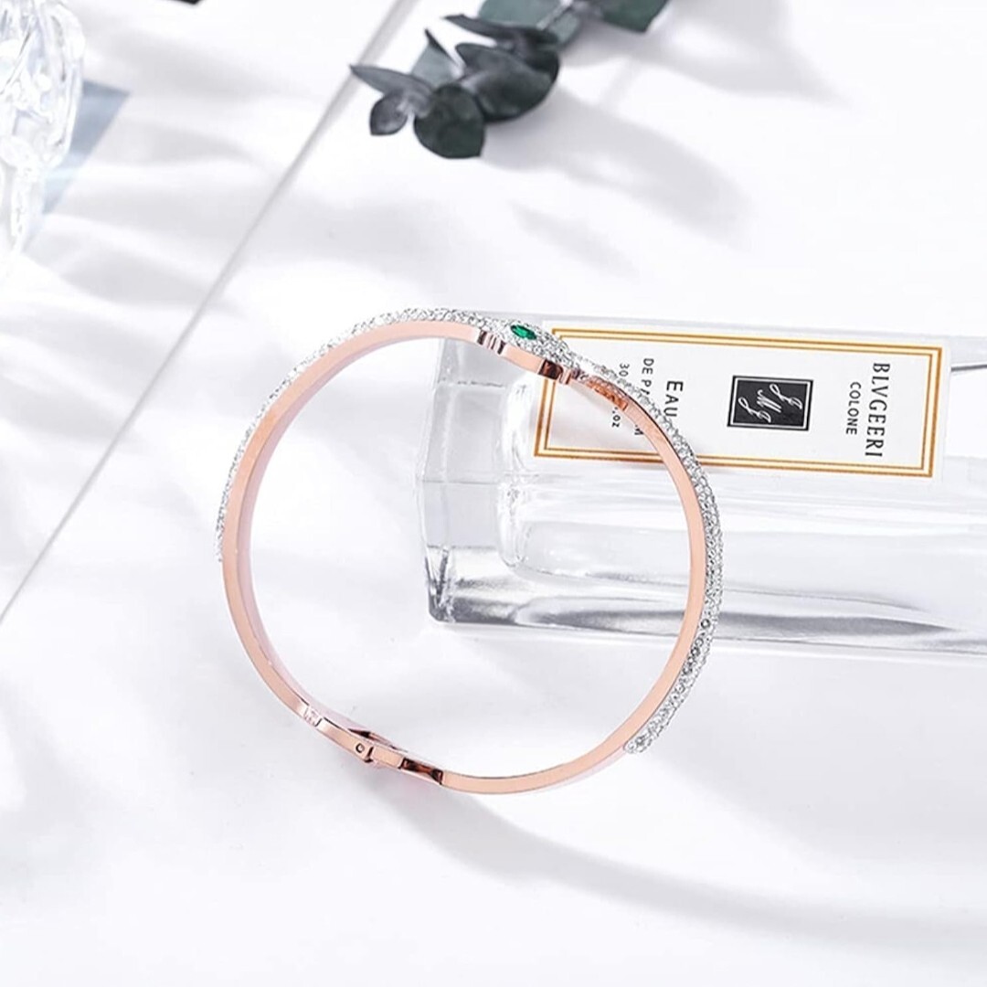 シンプルで着用しやすいデザイン、派手過ぎず、地味過ぎない、ちょうど良い存在感が魅力の蛇バングルです。普段使いでもフォーマルでも大活躍する、人気の18Kバングルです。