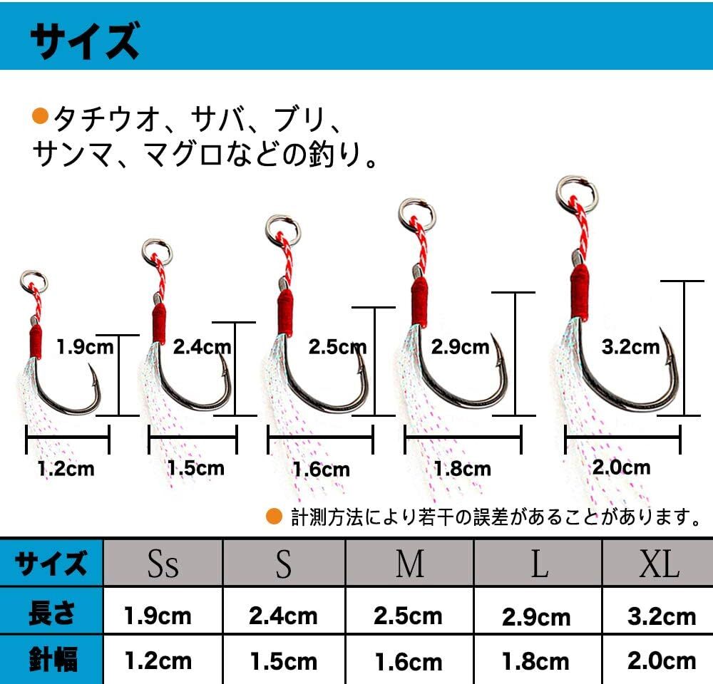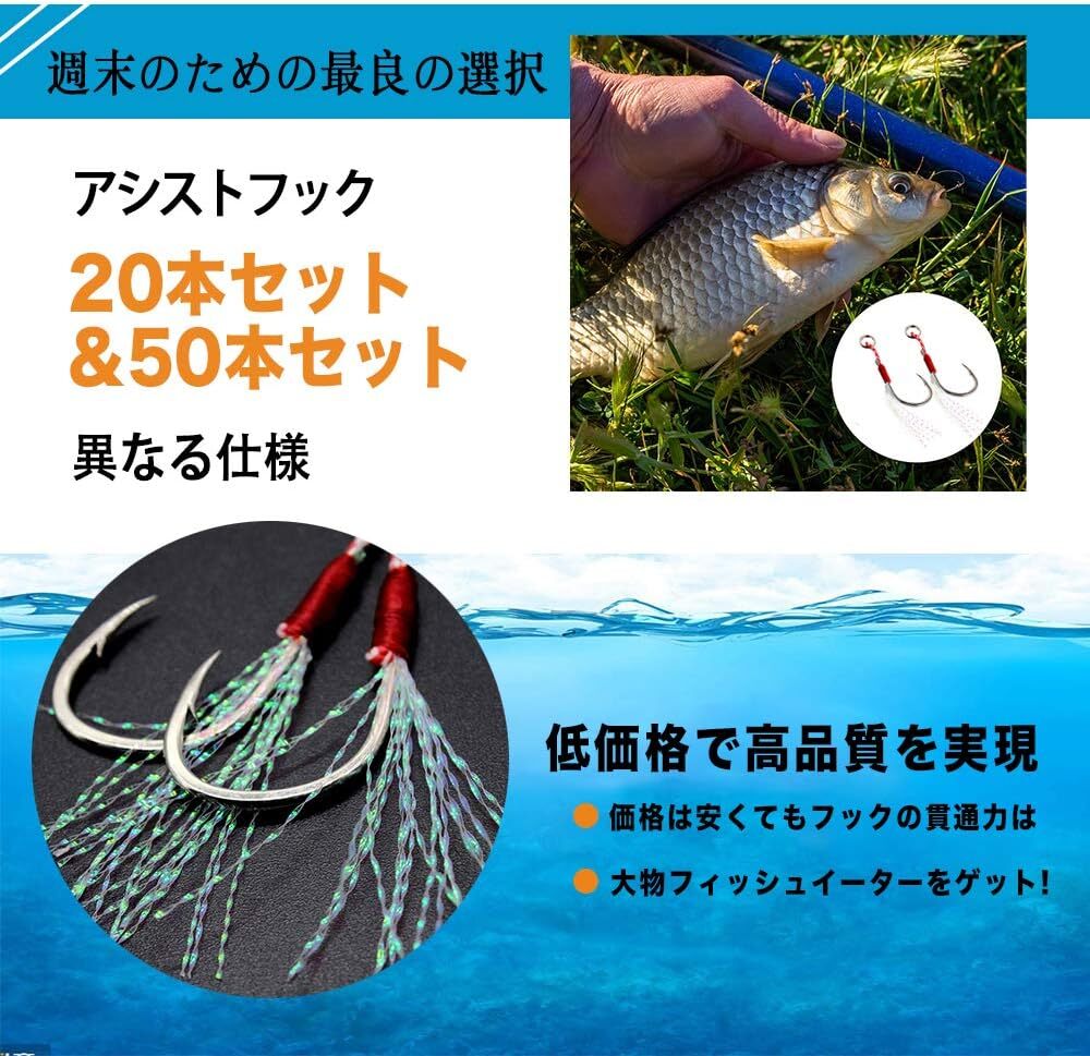 アシストフック メタルジグ 20本セット/50本セット ティンセル付き 釣具 ライトショアジギング オフショアジギング 釣り用品