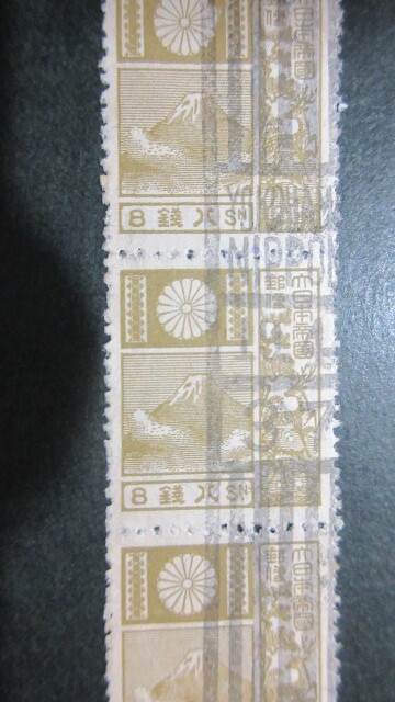 【欧文ローラー印】新版改色富士鹿8銭 YOKOHAMA/NIPPON/19.4/37
