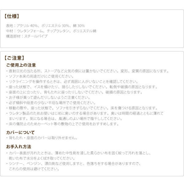 | 商品説明 | 商品名:リクライニング2人掛けローソファー フラビオ 出品商品はベージュ色 商品サイズ:幅128x奥行71x高さ58cm 表地:アクリル40%ポリエステル30%綿30% 中材:チップウレタン/ウレタンフォーム/ポリエステル綿 構造部材:スチールパイプ 完成品 商品画像は、デジタルカメラで撮影しておりますので、 お客様のPCモニターやインターネット環境の違いにより、 多少色合いが違って見えることが御座います。 予めご了承下さい。 |