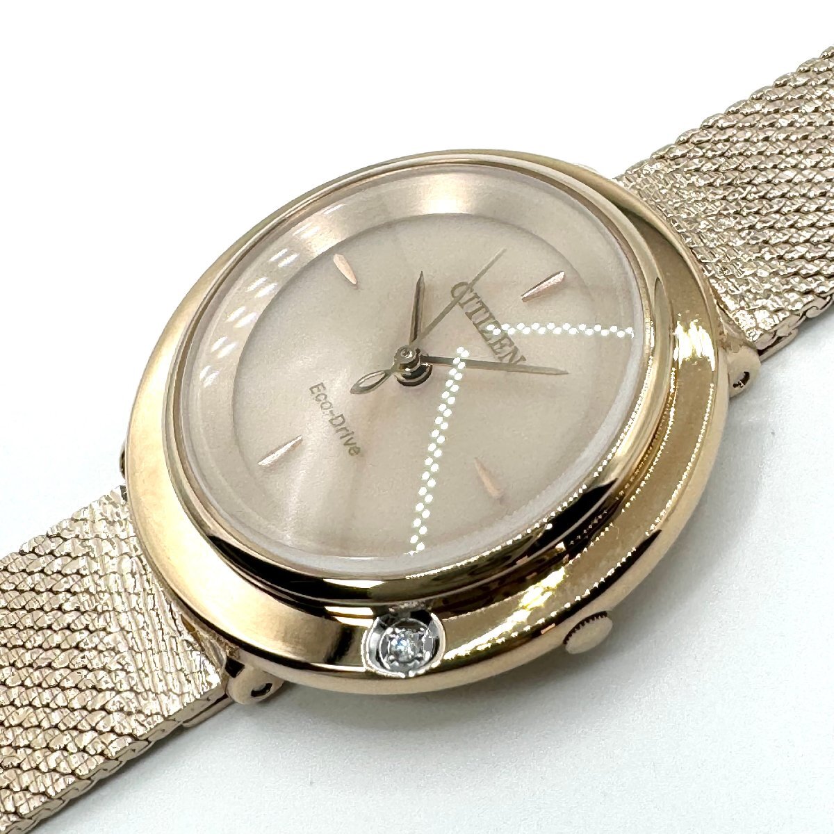 光を受けて輝く砂紋をモチーフとしたステンレスメッシュのベルトは表面に細かなパターンを型押しを施したシチズンオリジナルです。
