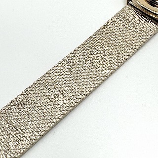 月明かりサファイアガラスと輝く砂紋をモチーフにしたメッシュのバンドが、エレガントな大人カジュアルを演出する腕時計。