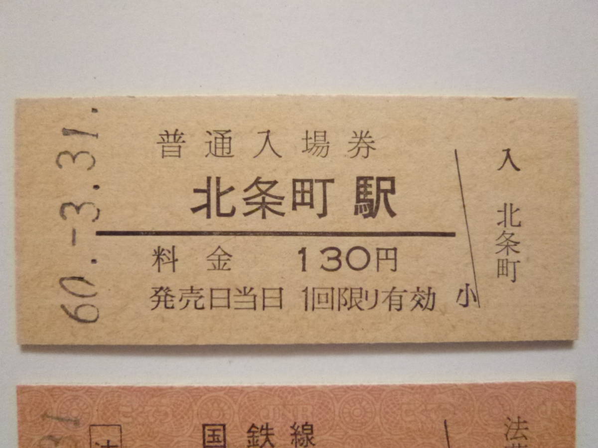 【営業最終日】北条線北条町駅硬券入場券1枚と法華口⇒130円区間硬券乗車券1枚のセットです。