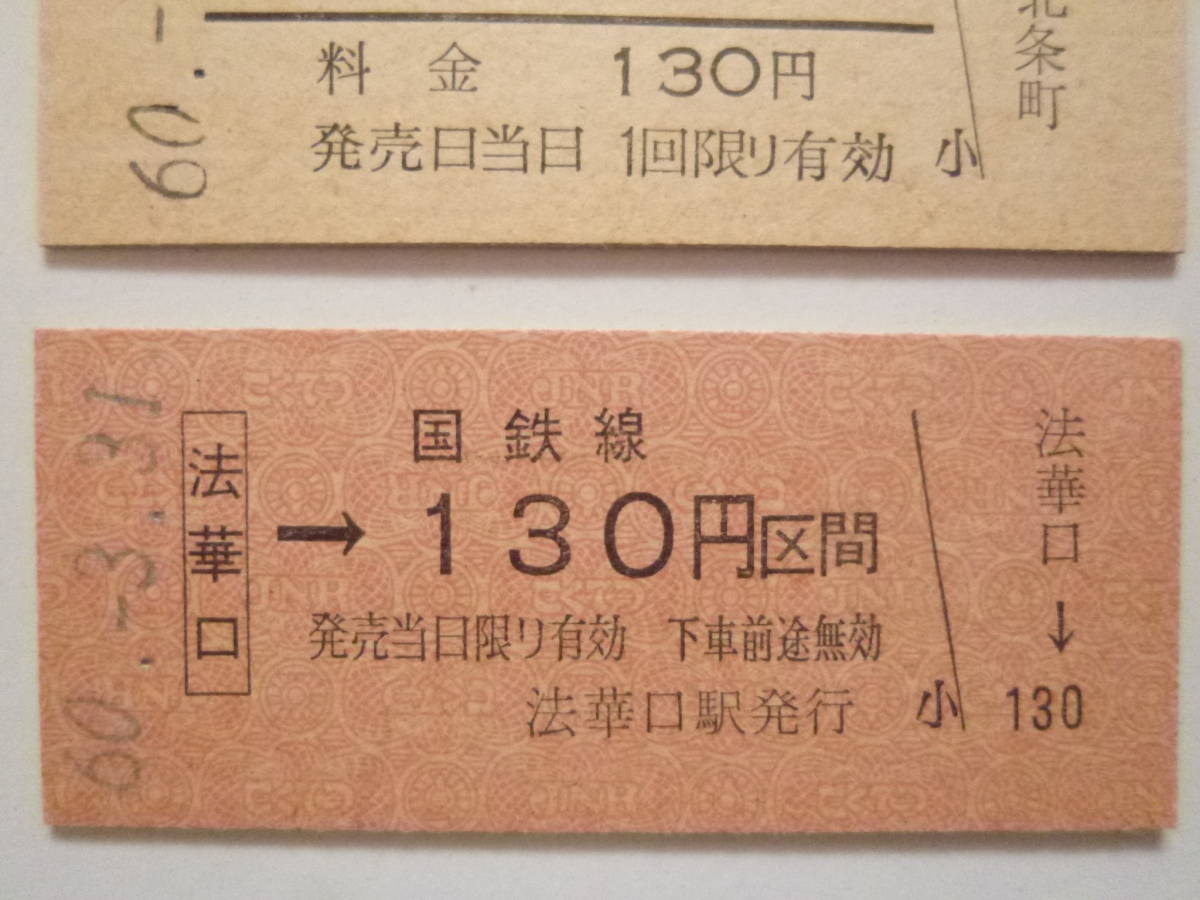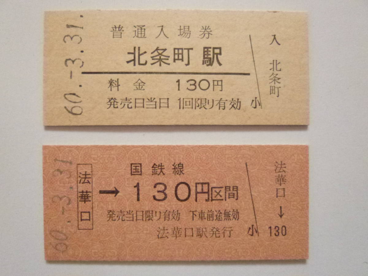 [国鉄最終日]北条線北条町駅硬券入場券と法華口⇒130円区間硬券乗車券セット(国鉄/廃止/廃線/粟生⇔北条町/昭和60年3月31日/北条鉄道)