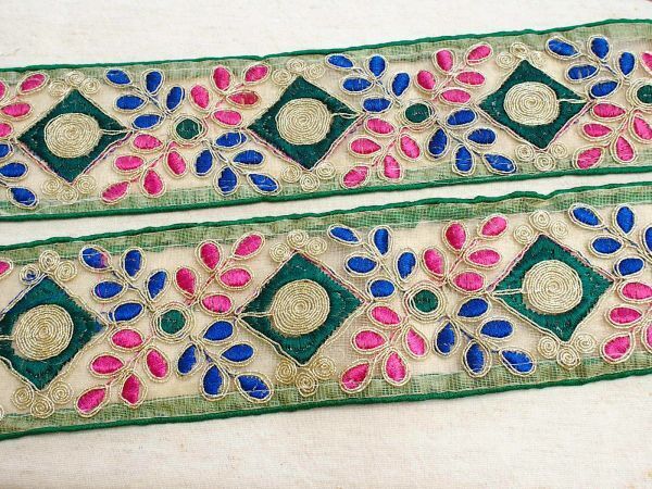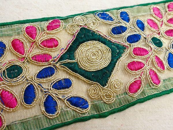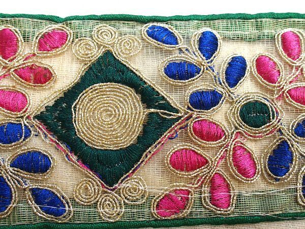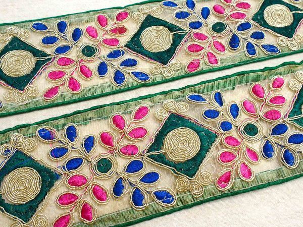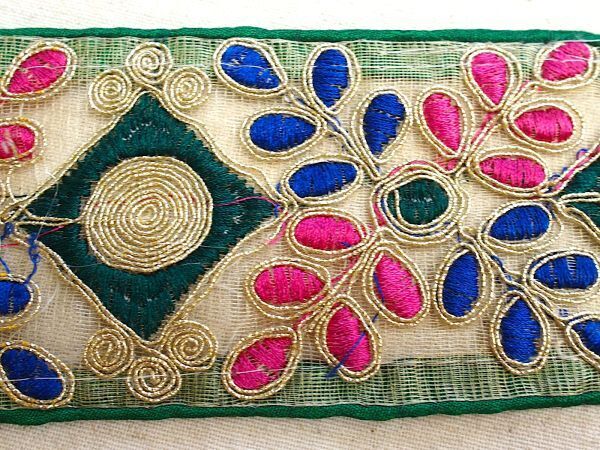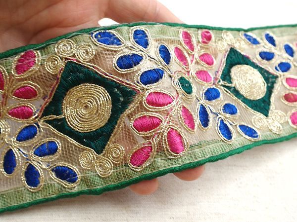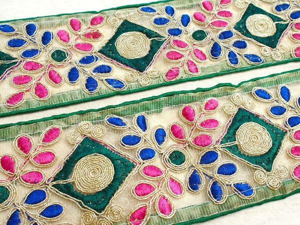 即決 50cmより インド刺繍テープ チロリアンテープ 葉☆カルトナージュ☆ハンドメイド☆手芸用品 インドサリー