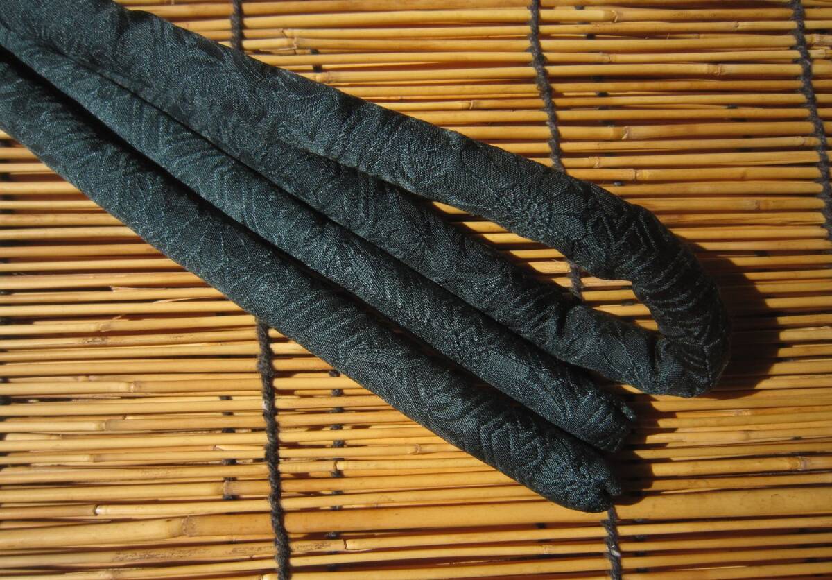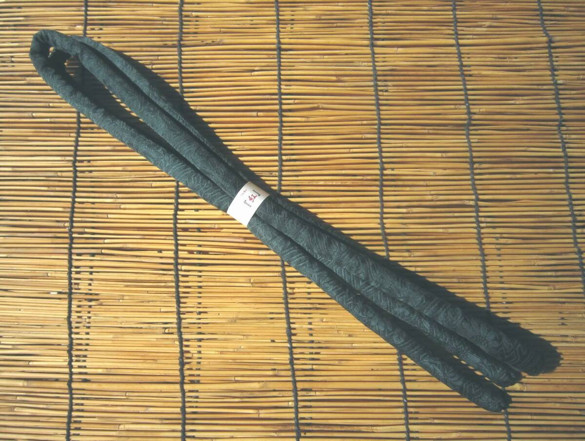 ■正絹古縮緬から手作りの、丸ぐけ帯締めです。古めの綸子。青味の深緑良い色です。