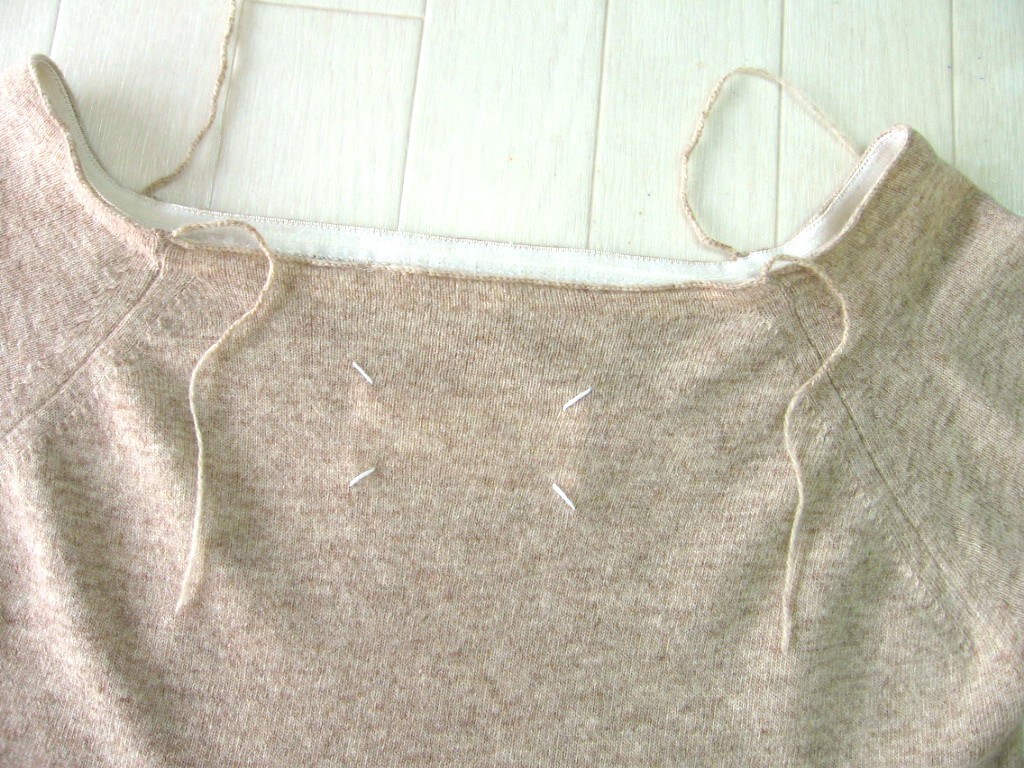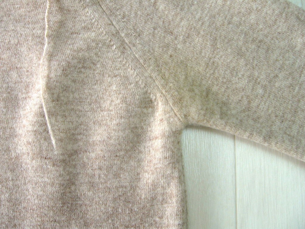 目立ちませんが、脇下にわずかな毛羽立ちとごく薄い黄ばみがあります。(画像)