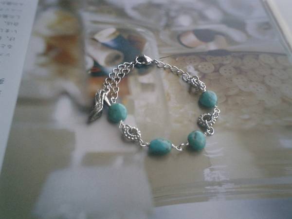 巴里の裏通りの小さなお店・・シリーズです♪秋のターコイズ・・シックなターコイズのブレスレットです♪キュートなメタルチャームを合わせてニューヨークモダンな表情です♪ターコイズは8ミリから10ミリ位のラフカットです♪長さは全長22センチ位で調節自由です♪♪同じデザインの石の大きさ違いのブレスレットやネックレスやイヤリングも出品しています♪ハンドメイドをご理解頂いてノークレーム、ノーリターンでお願いします