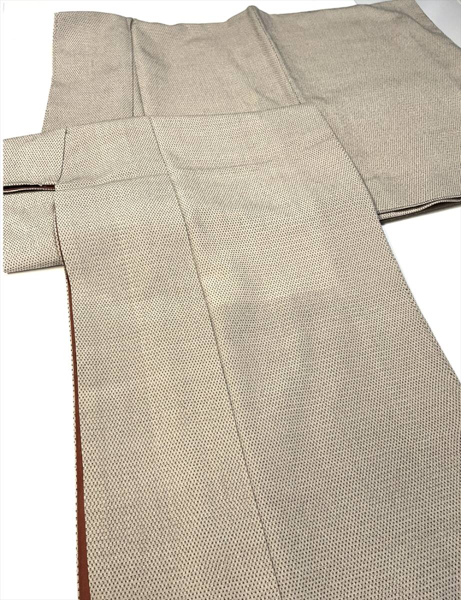 花とら●リサイクル着物 紬 塩澤お召 十字絣 ベージュ リメイク 素材    240920
