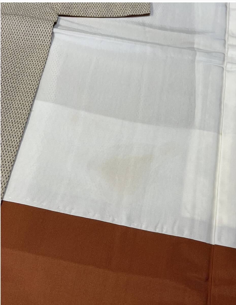 衿汚れがあり、胴裏尻付近にシミがあります。