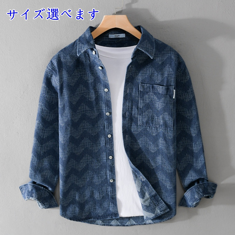 デニムシャツ ウエスタンシャツ メンズ・新品 長袖シャツ ヴィンテージ デニムジャケット シャツジャケット トップス【9695】ブルー【M-3XL選択】