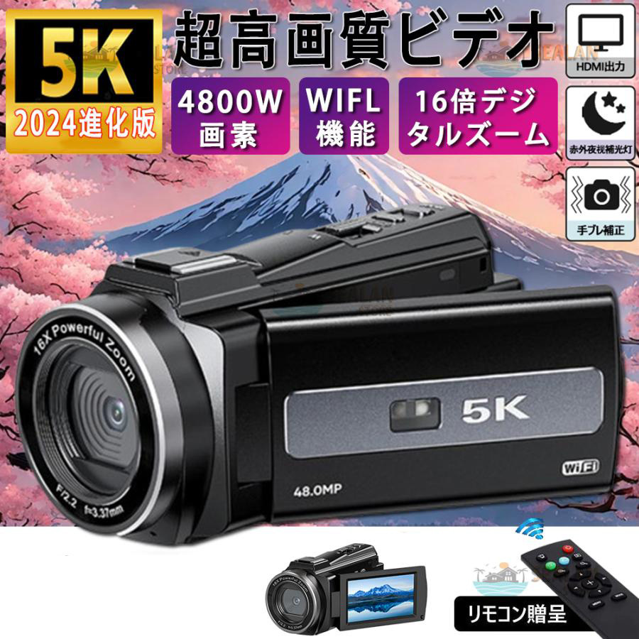 【未使用】5Kビデオカメラ 小型 4800万画素 日本製センサー 16倍デジタルズーム カメラ 手ぶれ補正 HDMI 日本語説明書あり