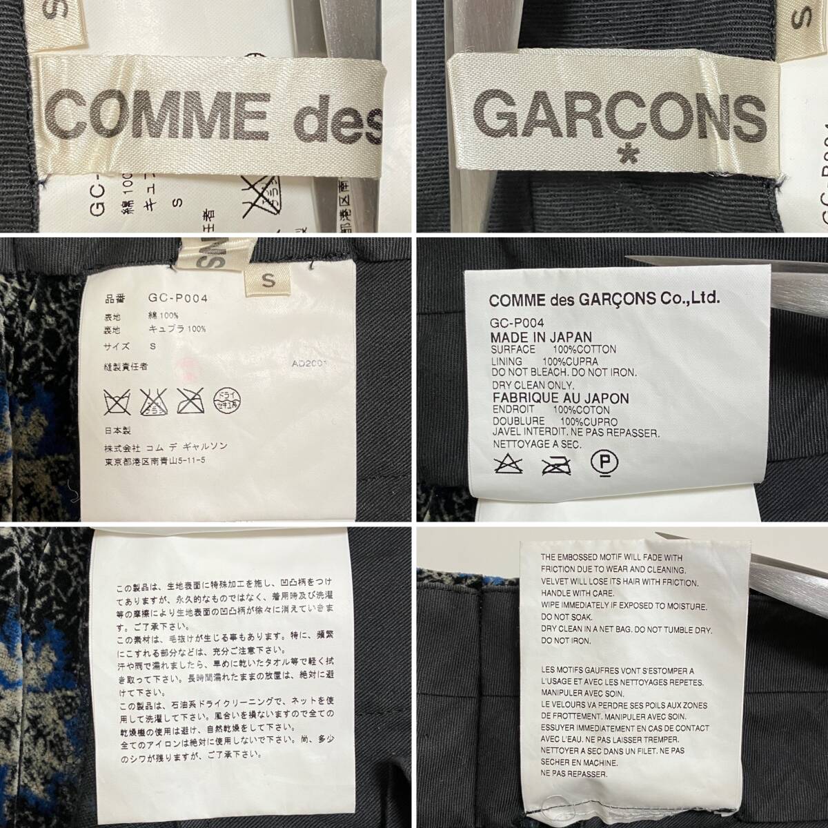 AD2001 COMME des GARCONS ベロア 総柄 フレア スラックス Sサイズ コムデギャルソン パンツ VINTAGE archive 4040329