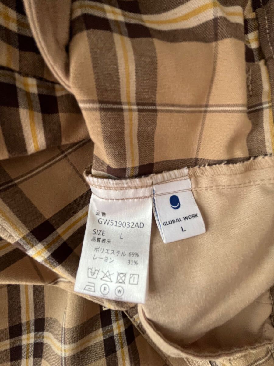 サイズ   L     色    ベージュ系チェック柄    素材  ポリエステル・レーヨン 裏地なし