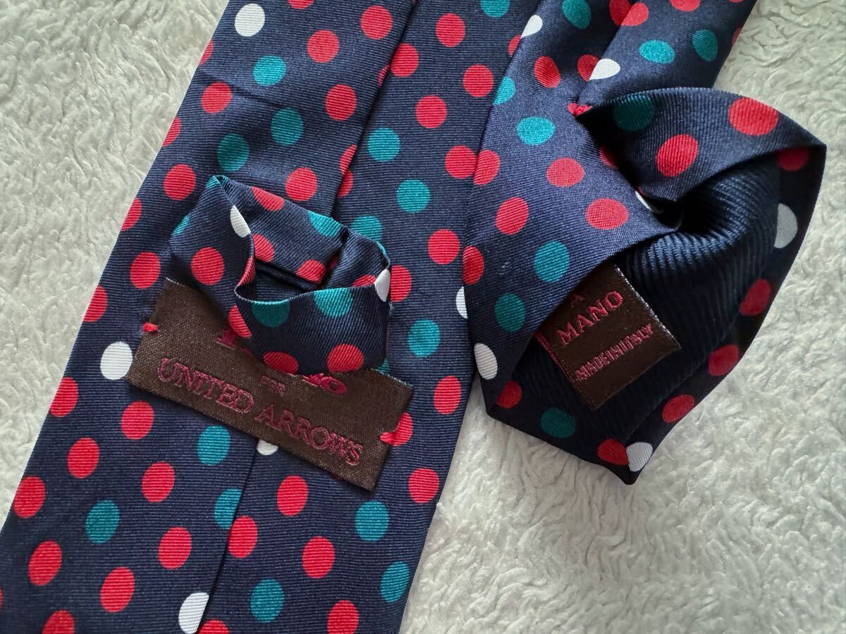 UNITED ARROWS 別注 fiorio イタリア製シルクネクタイ ドット柄 ダークネイビー レッド ホワイト フィオリオ ユナイテッドアローズ