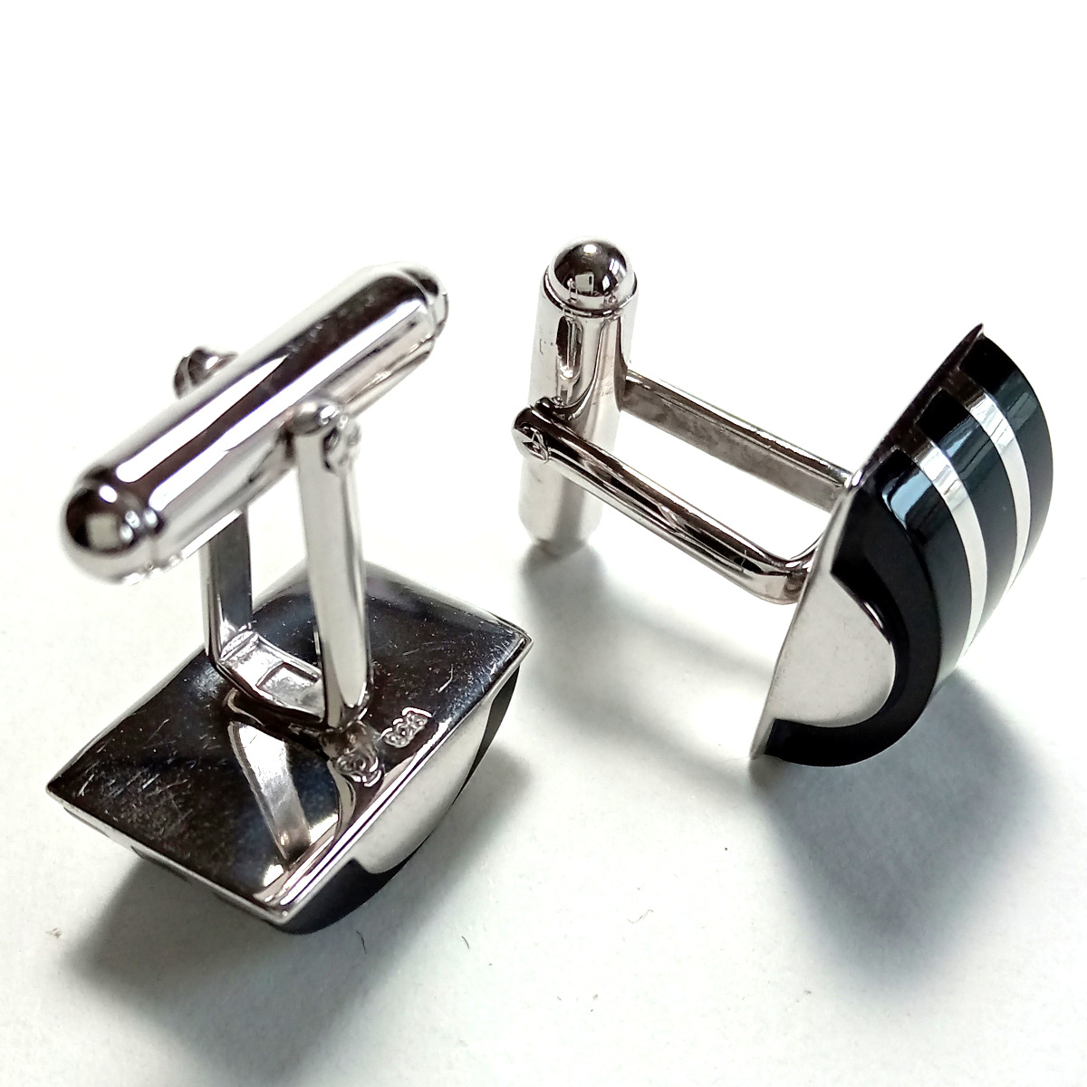【カラー】シルバー×ブラック(ダブルストライプ) 【サイズ】1.2㎝×1.7㎝(Dシェイプ) 【素材】シルバー925×オニキス 【付属品】専用ボックスケース 【状態】擦れキズあります。 デザイン違い等、他にも多数出品しています。 発送方法について ゆうパック元払い発送以外は承っておりません。 同梱いたします。(何点でも送料は1点分です。) 土日祝日の発送はお休みを頂いております。 | |