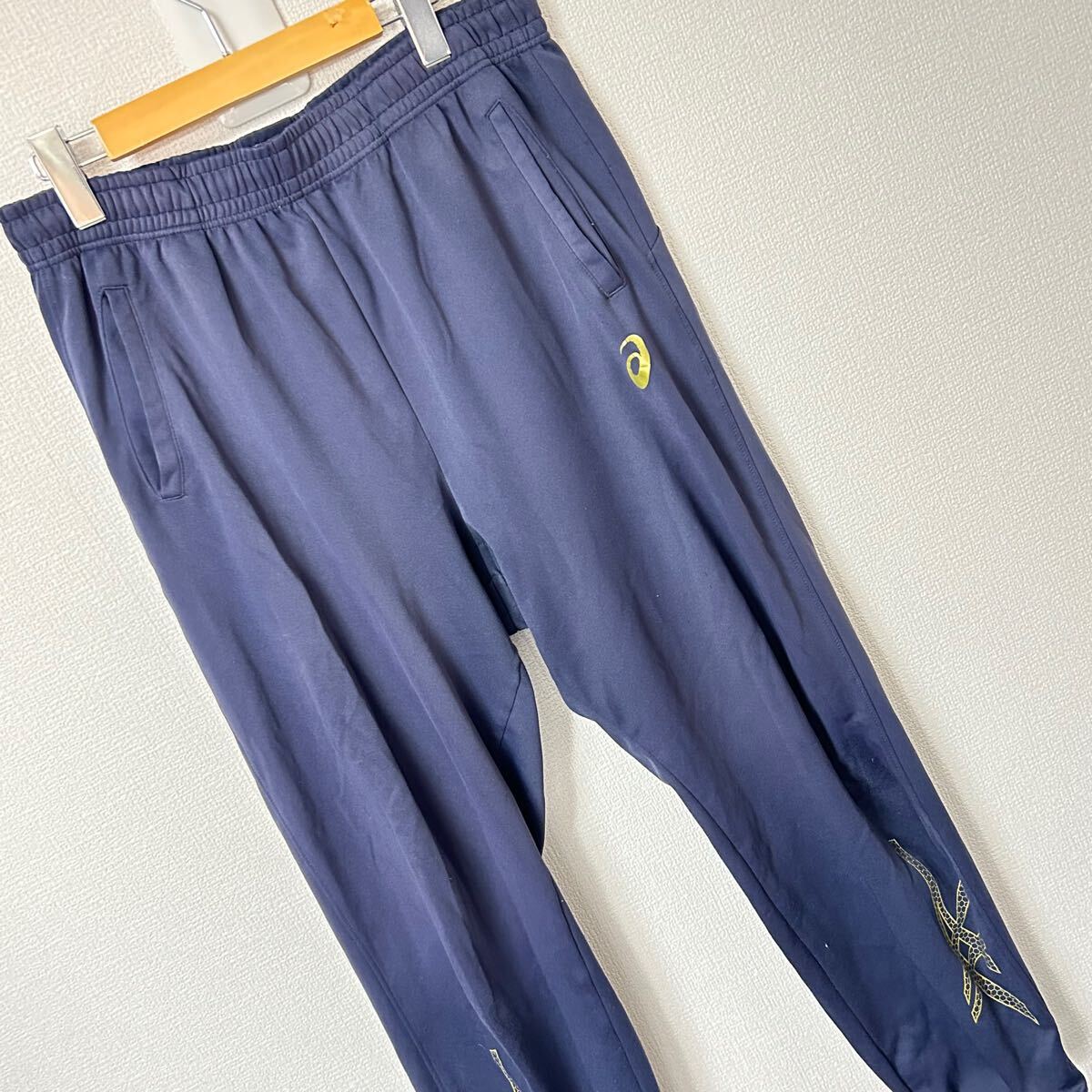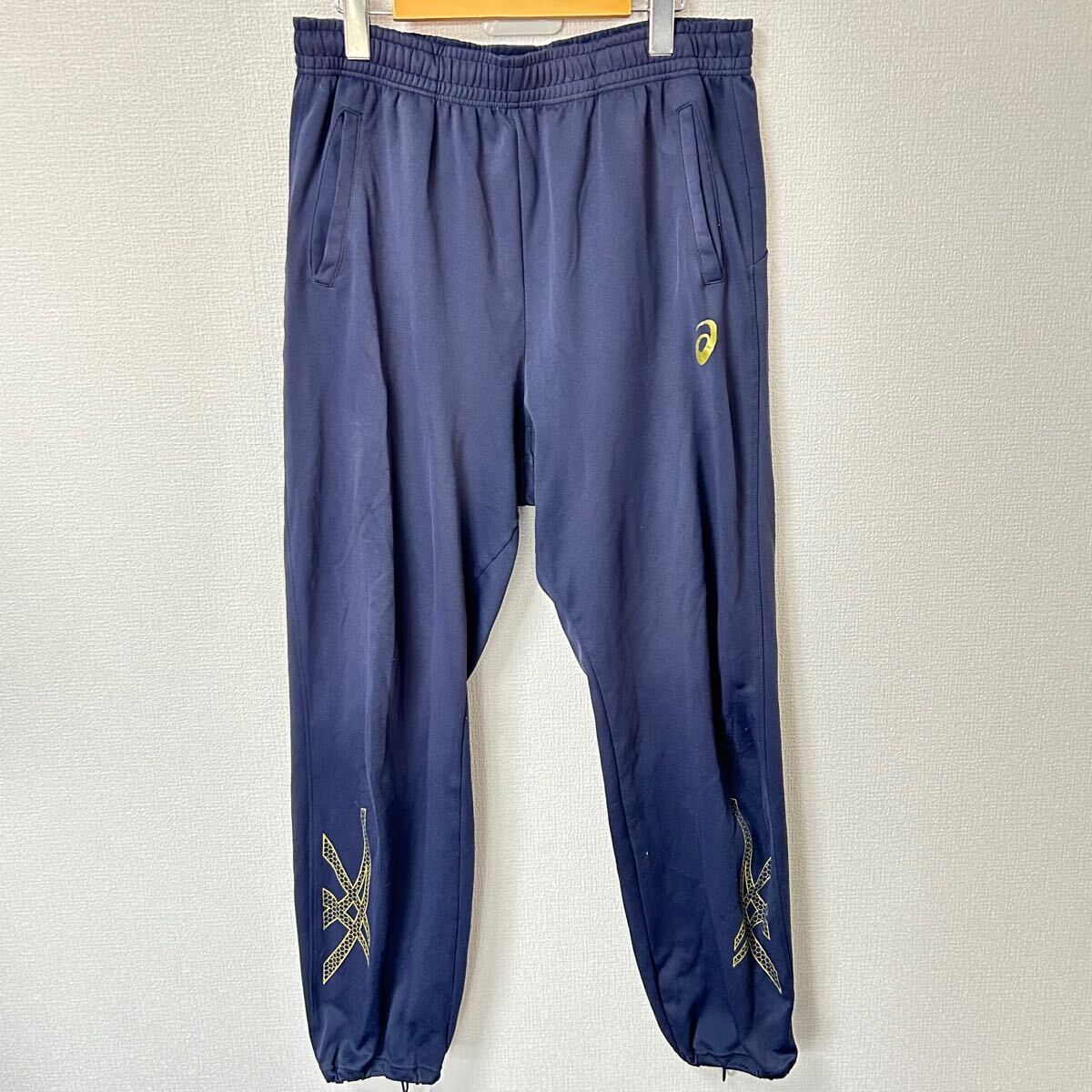 asicsのトラックパンツです。裾にはドローコード付きで、様々なスポーツシーンで活躍いただけます。毛玉や生地の薄くなっている箇所があり、やや着用感はありますが、目立つダメージやよごれはなく、まだまだ着ていただけます。