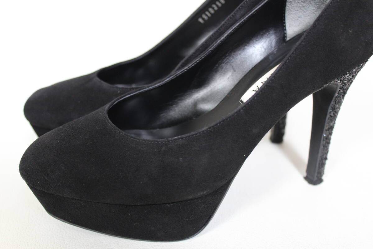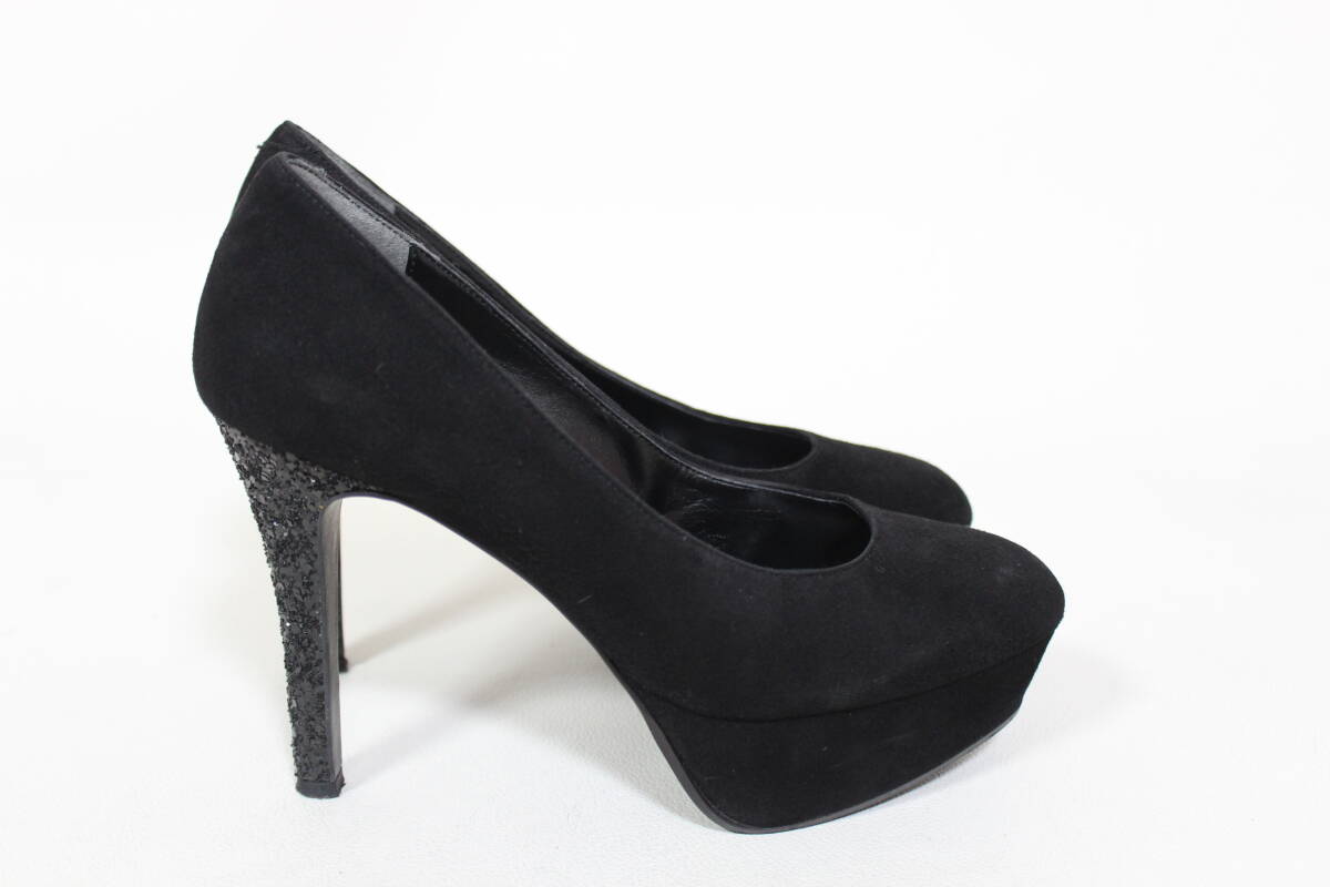 ヒール部分にグリッターがきらめく華やかなパンプス。