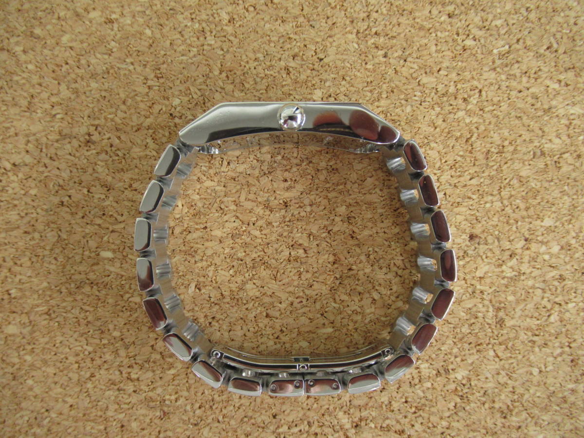 フェラガモらしいお洒落なデザインのレディースウォッチです!! このモデルは革ベルトのモデルは稀に見掛けますが、本体と一体感あるデザインのステンレスブレスの付いた希少なモデルで、ブレスレット感覚でお使い頂けます!! ケース幅は約16ミリ、腕周りは測定具計測で約16センチでコマを外す事で短く出来ます。