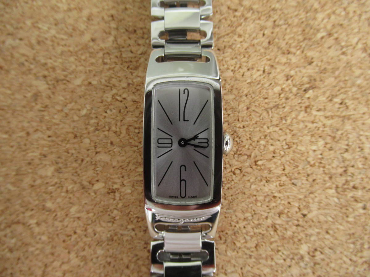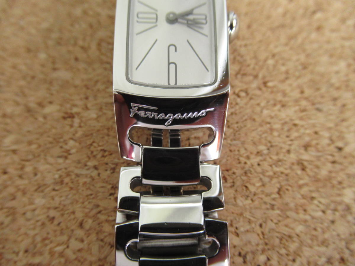 サルバトーレ フェラガモ レディースウォッチ 希少なステンレスブレス付 外装仕上げ&除菌洗浄済みの美品 電池交換済み 激安 !!