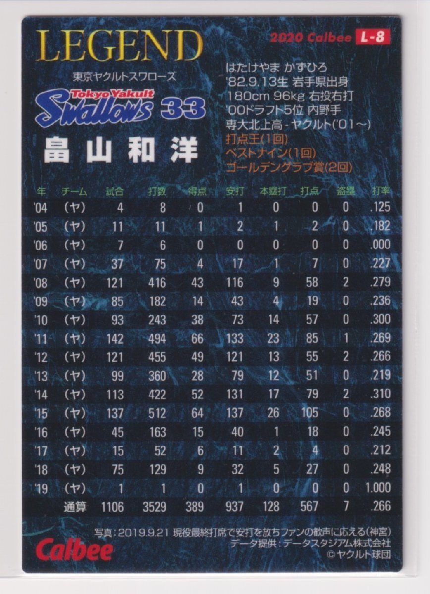 2020プロ野球チップス第1弾 L-8 畠山和洋(ヤクルト)