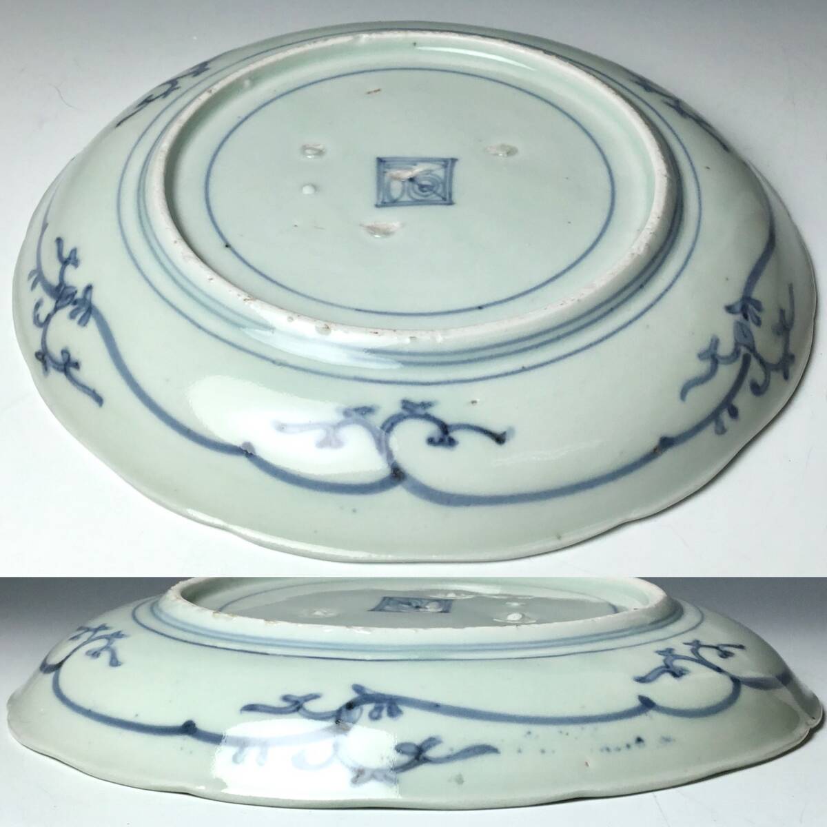 古伊万里:江戸後期文化文政期唐草松竹梅輪花縁七寸皿