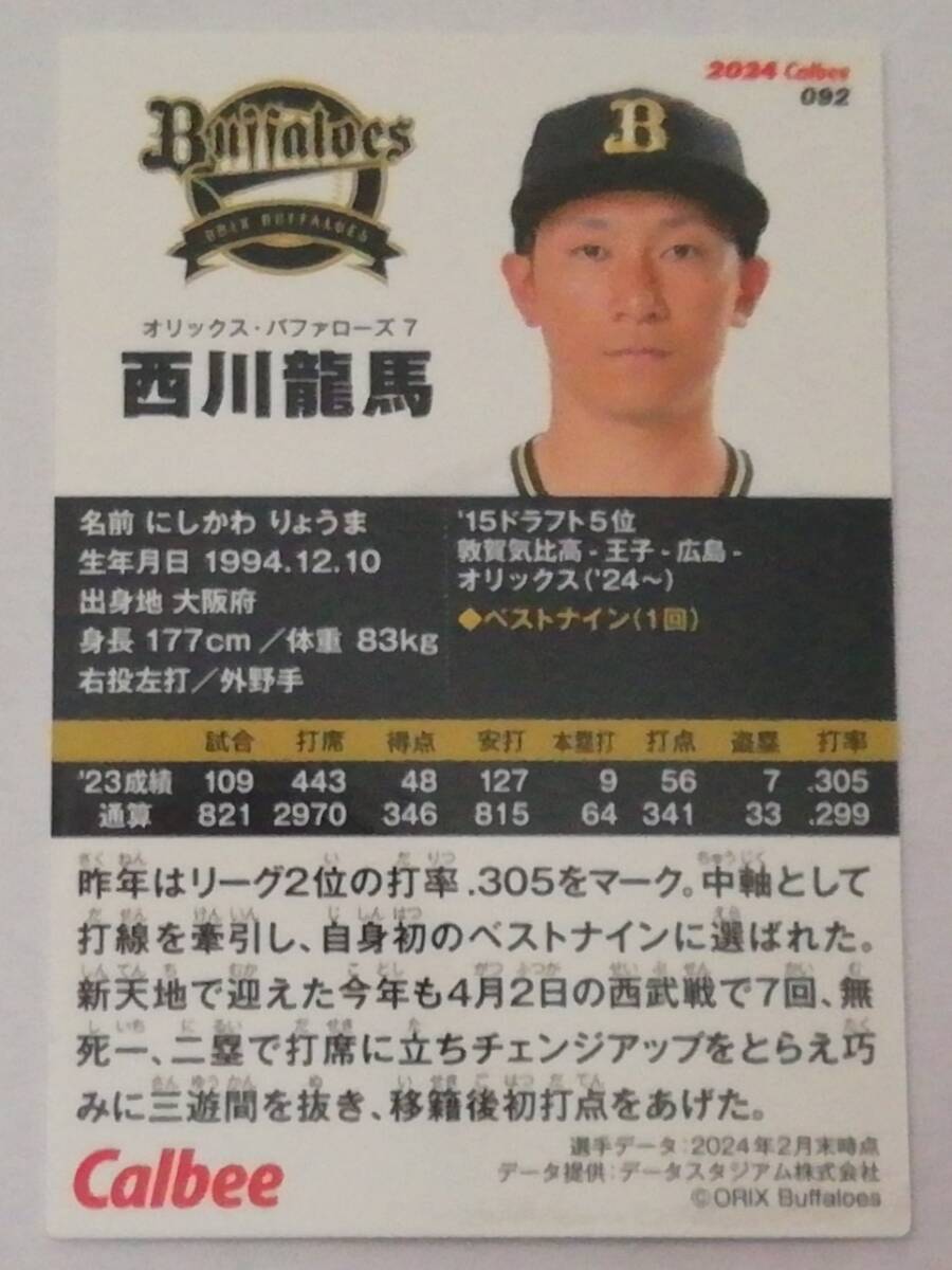 カルビー2024 プロ野球チップス 第2弾 西川 龍馬(オリックス・バッファロー) 092