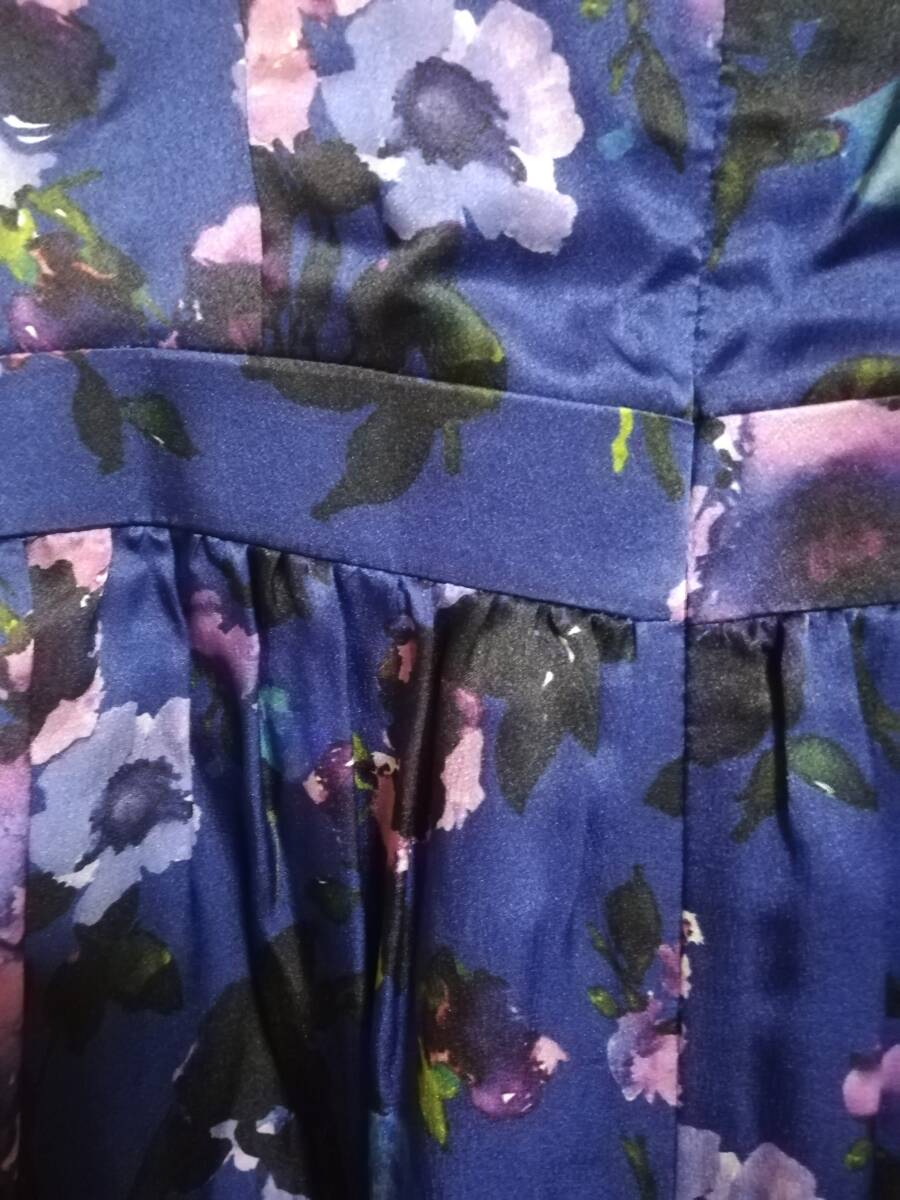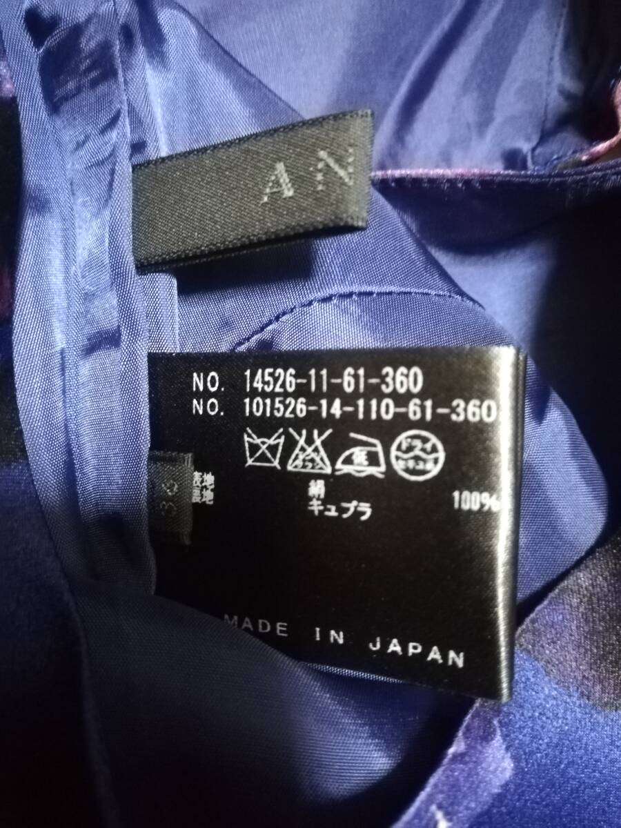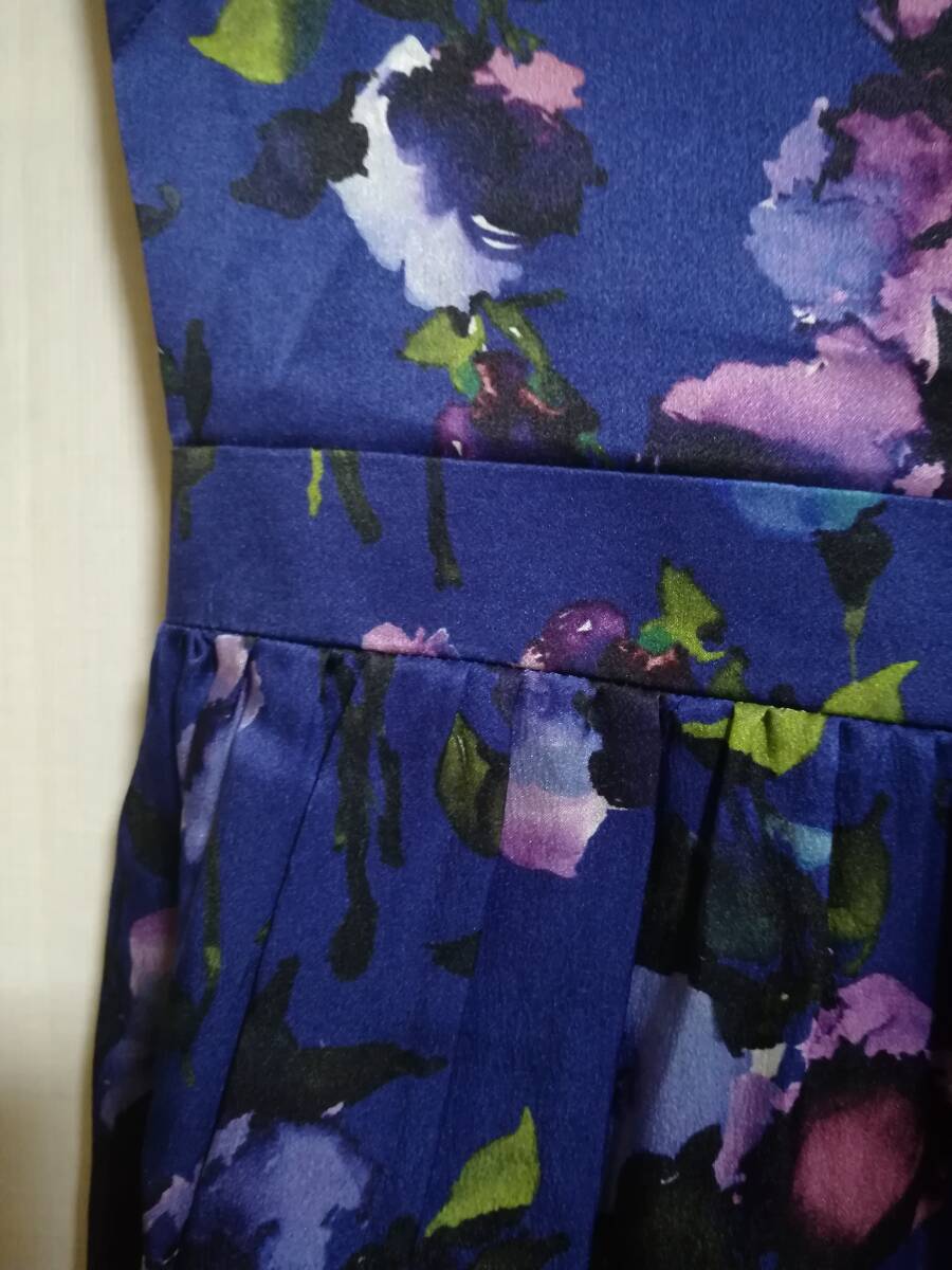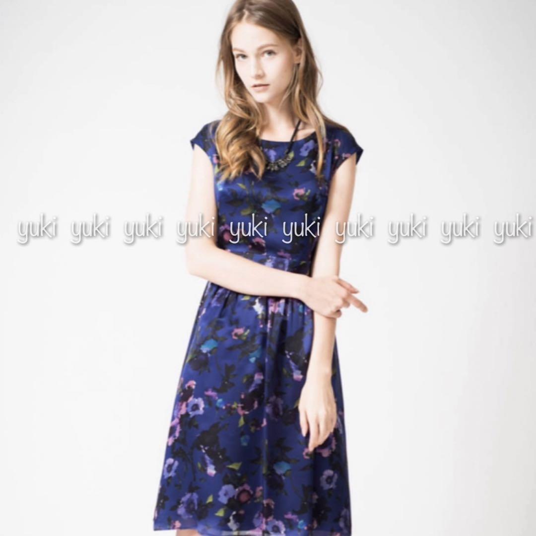 ANAYI シルクサテンフラワープリント ギャザーワンピース